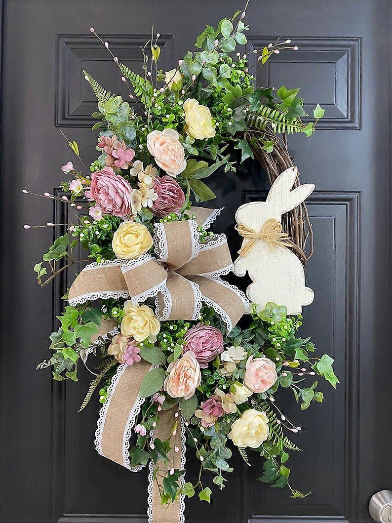 Easter rabbit wreath home simulation plant rattan wreath party decoration door hanging props