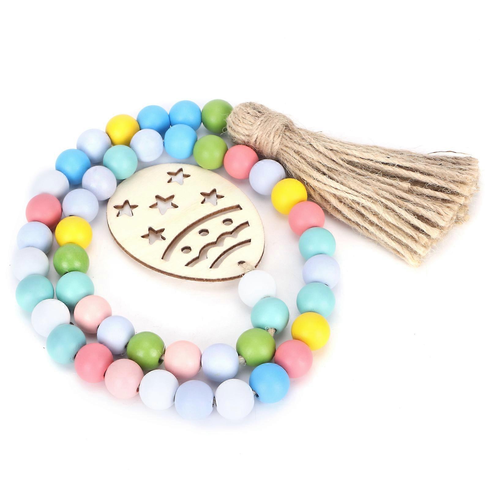 Easter Wood Bead Garland ful Beads Pendant Ornat Home Room Decoration 85cm