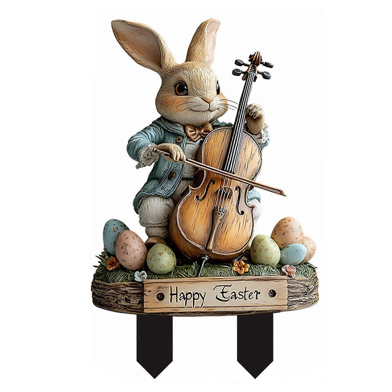 Easter Egg Rabbit Ornament Garden Decoration Stake 2D Acrylic Bunny Yard Sign Cartoon Outdoor Decor Stake for Lawn Courtyard
