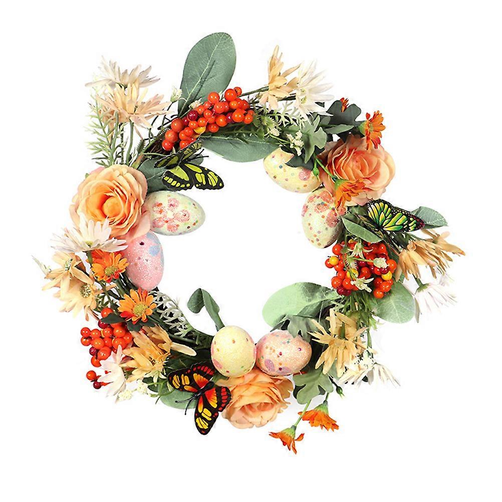 Easter Egg Garland Wreath with Natural Rattan for Door Decoration