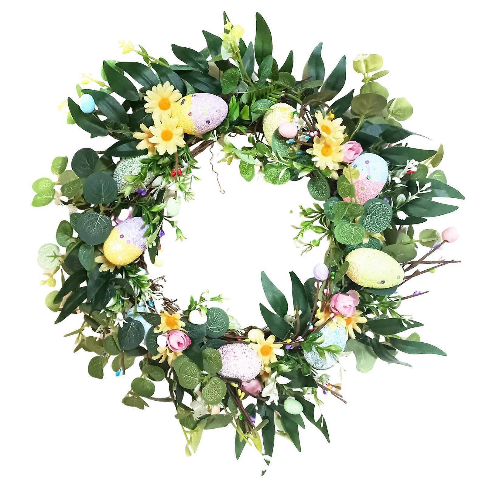 Easter Egg Wreath Front Door Hanging Artificial Flower Wreath Easter Wreath
