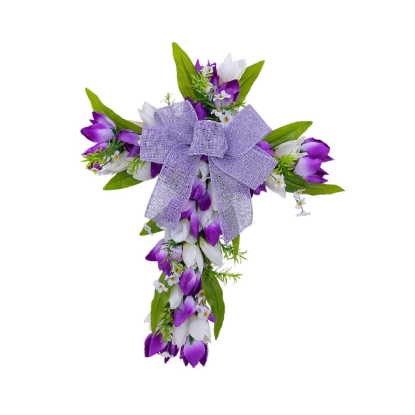 Easter Cross Wreath,Spring Wreath Home Decor Floral Wreath Tulip Door Wreath