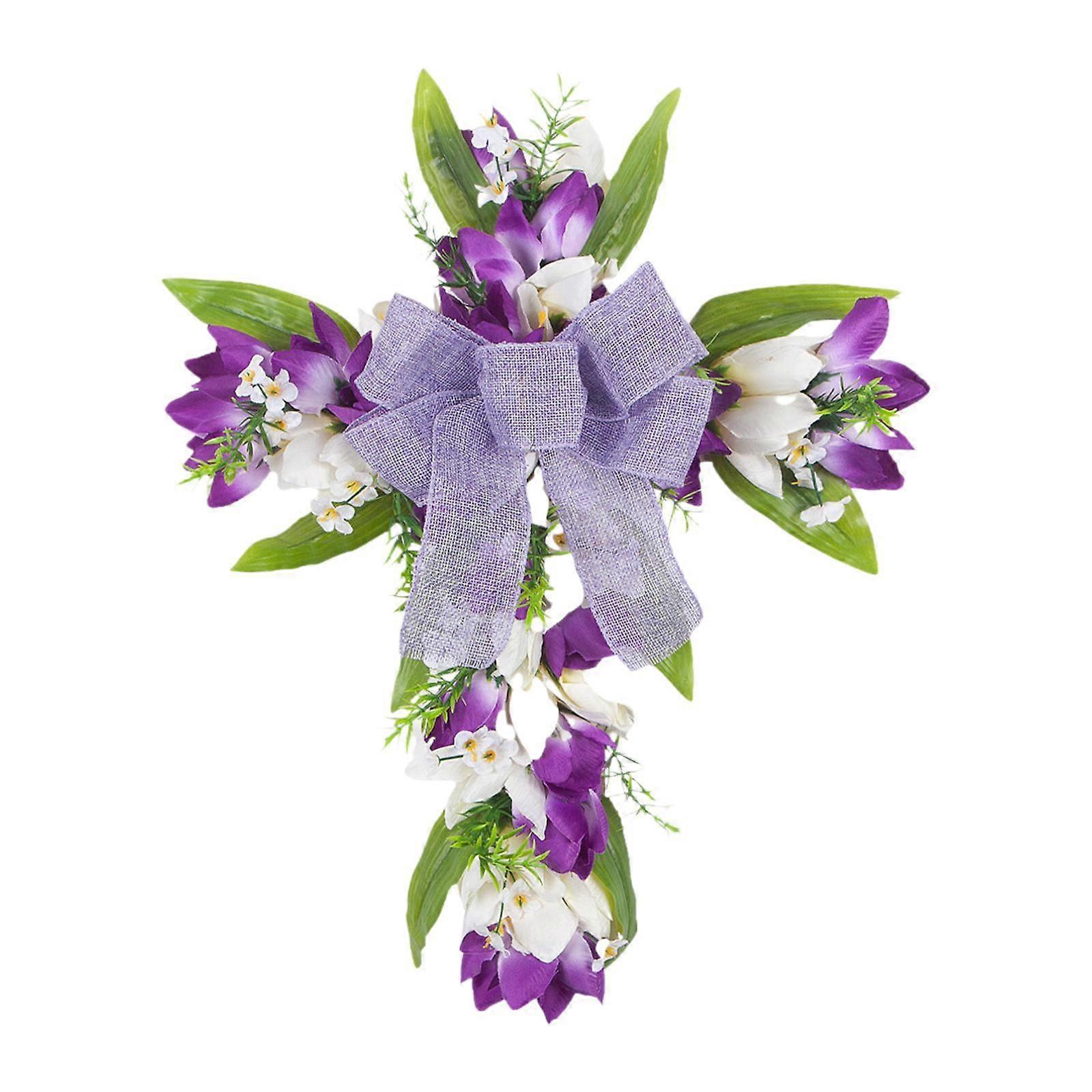 Easter Cross Wreath Artificial Flower Wreath Tulip Door Wreath Table Centerpiece