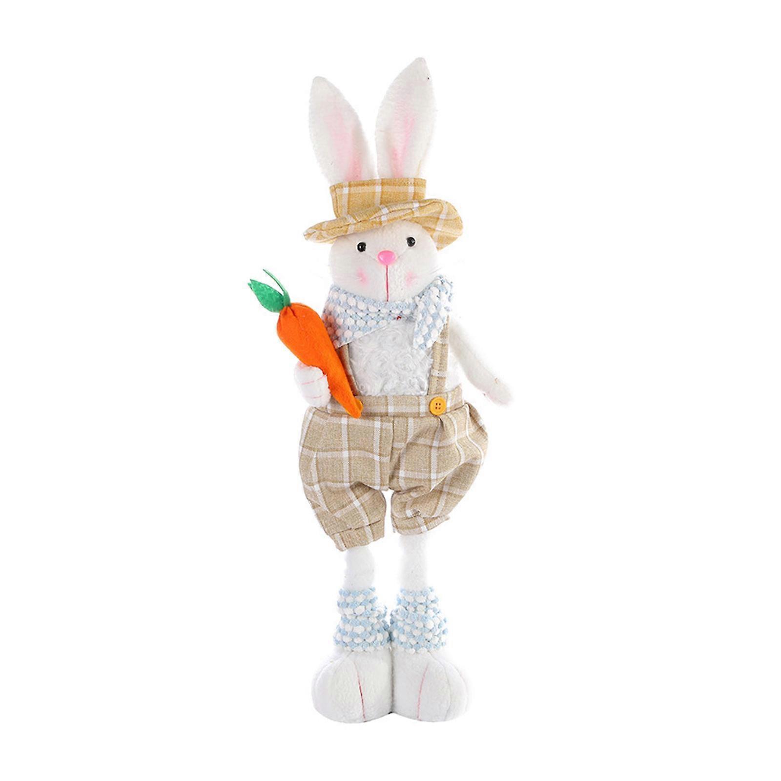 Easter Standing Rabbit Doll Toy Handmade Lovely Plush Ornament Couple Gift for Table Decoration and Kids Comforting Khaki