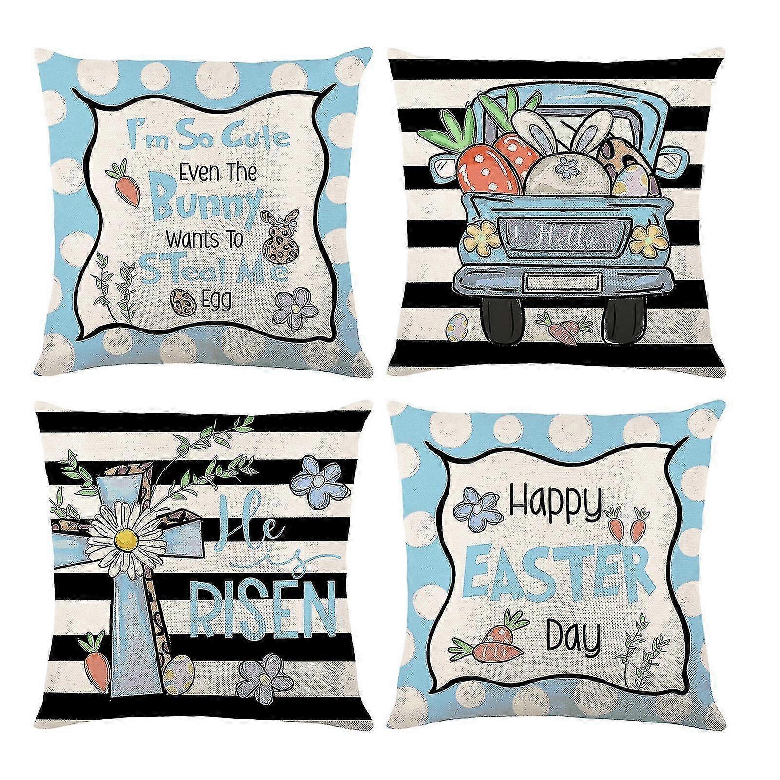 Easter Throw Pillow Cover 4pcs/set 18x18 Inch Flax Soft Durable Home Decoration Multicolor