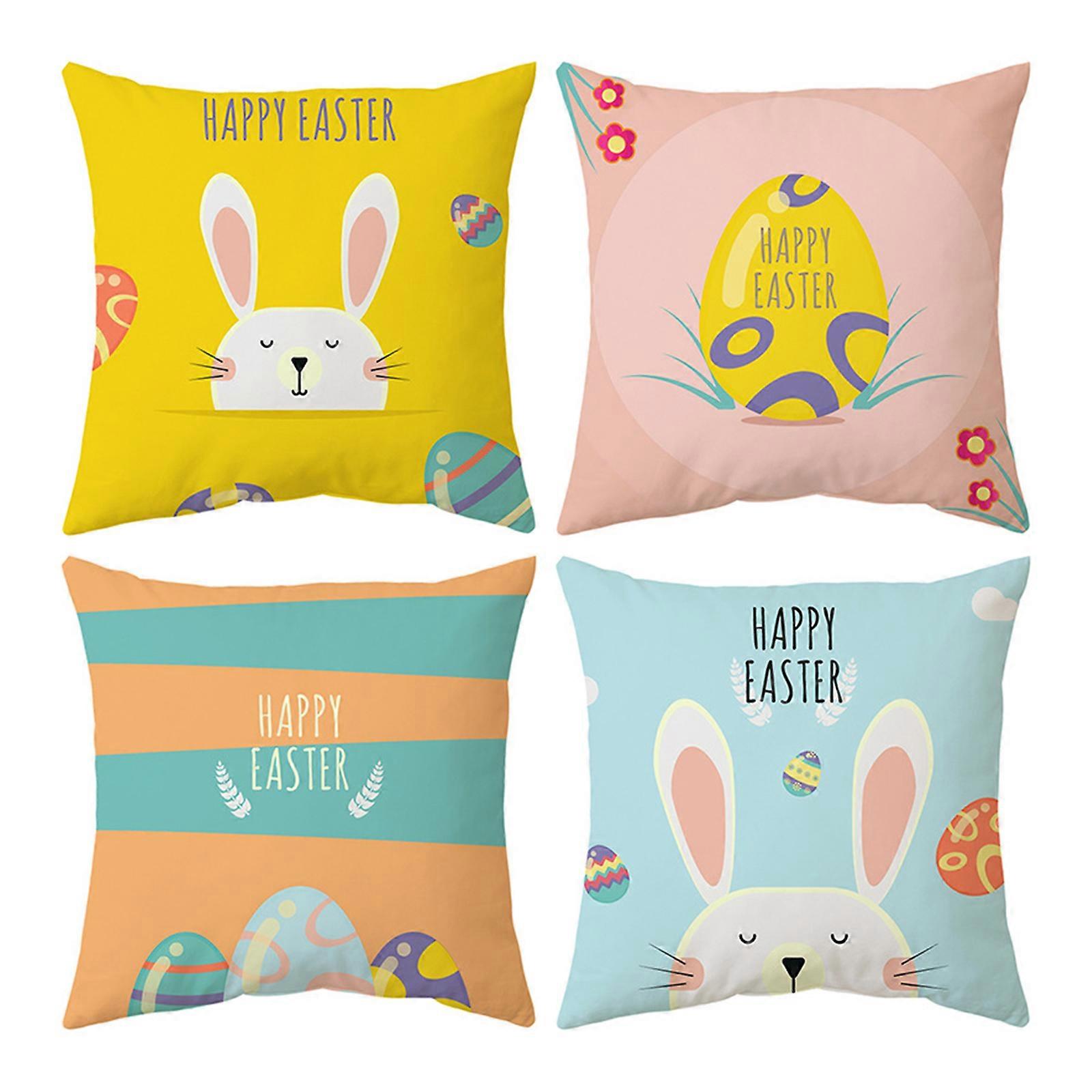 Easter Throw Pillow Cases 4pcs Short Plush Multicolor 18x18 inch, Cute Cartoon Bunny Egg Print Sofa Cushion Covers