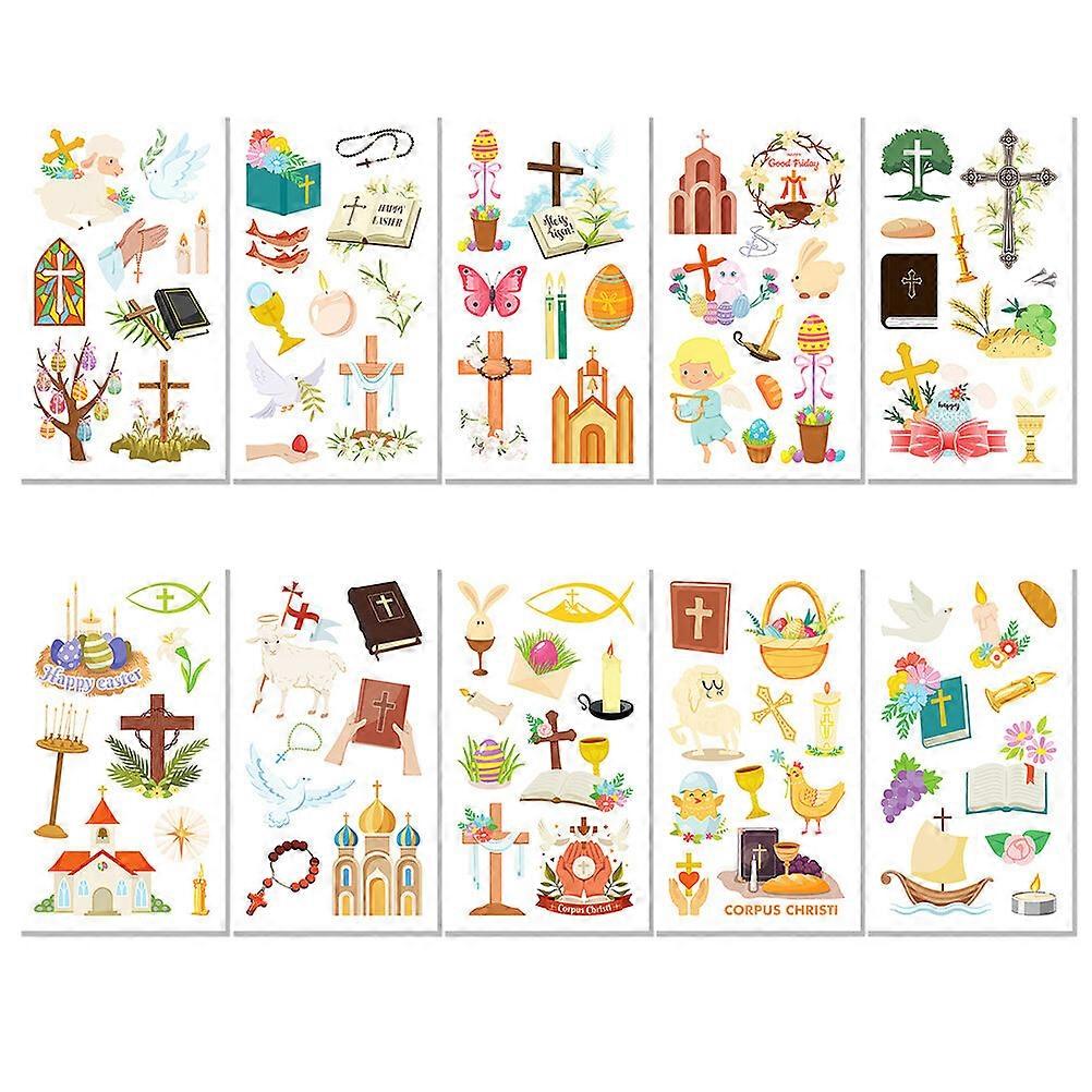 10 Sheets of Easter Tattoo Stickers Easter Themed Decals Cartoon Easter Themed Decals
