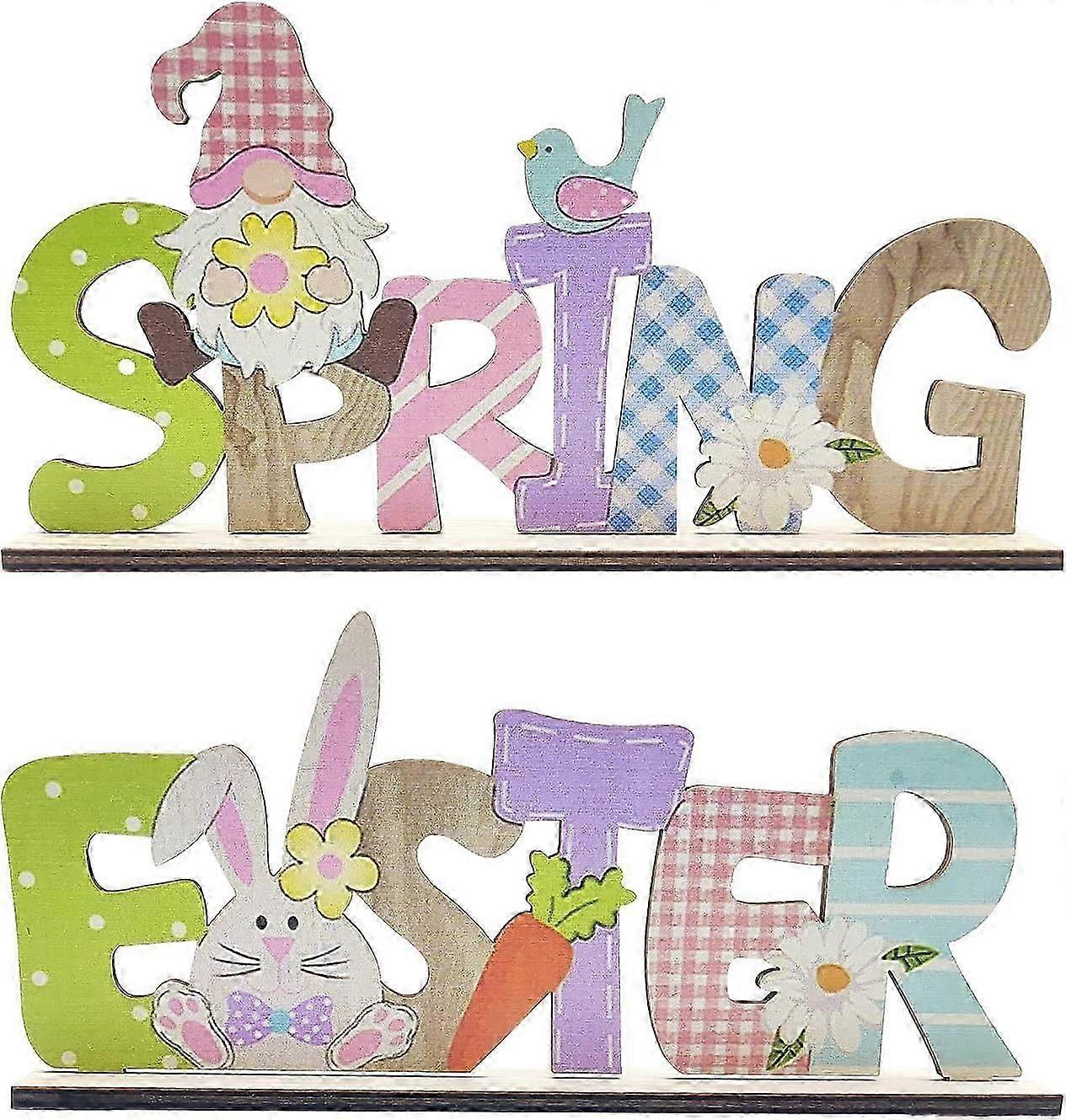 Easter Table Decorations,2PCS Wooden Spring Easter Sign Stand Table Decorations