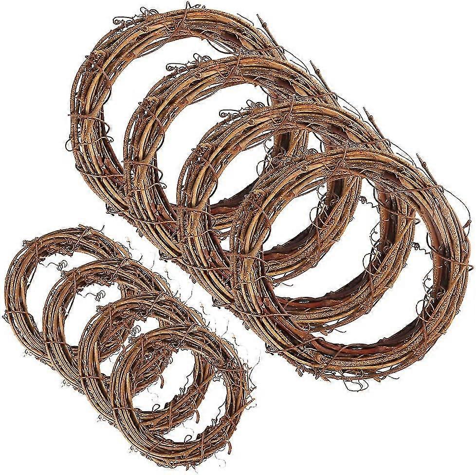 8 PCS 8 - 12 cm Grapevine Wreaths Vine Branch Christmas Wreath Rattan Wreath Garland for Christmas crafts or wedding supplies Features: Grapevine wreaths are so decorative that you can inspire your imagination to make a variety of combinations by adding berries, flowers, leaves and other crafts. You can create a unique Christmas wreath with your family, which can strengthen your relationship and make your relationship more harmonious. Grapevine wreaths are excellent base components for dried flowers and artificial flowers, which are natural, eco-friendly and degradable. Secifications: Material: Natural vines Size: Approx 8cm and 12cm in diameter Color: Brown Package included: 4 x Vine Wreaths (8cm in diameter) 4 x Vine Wreaths (12cm in diameter) tre)