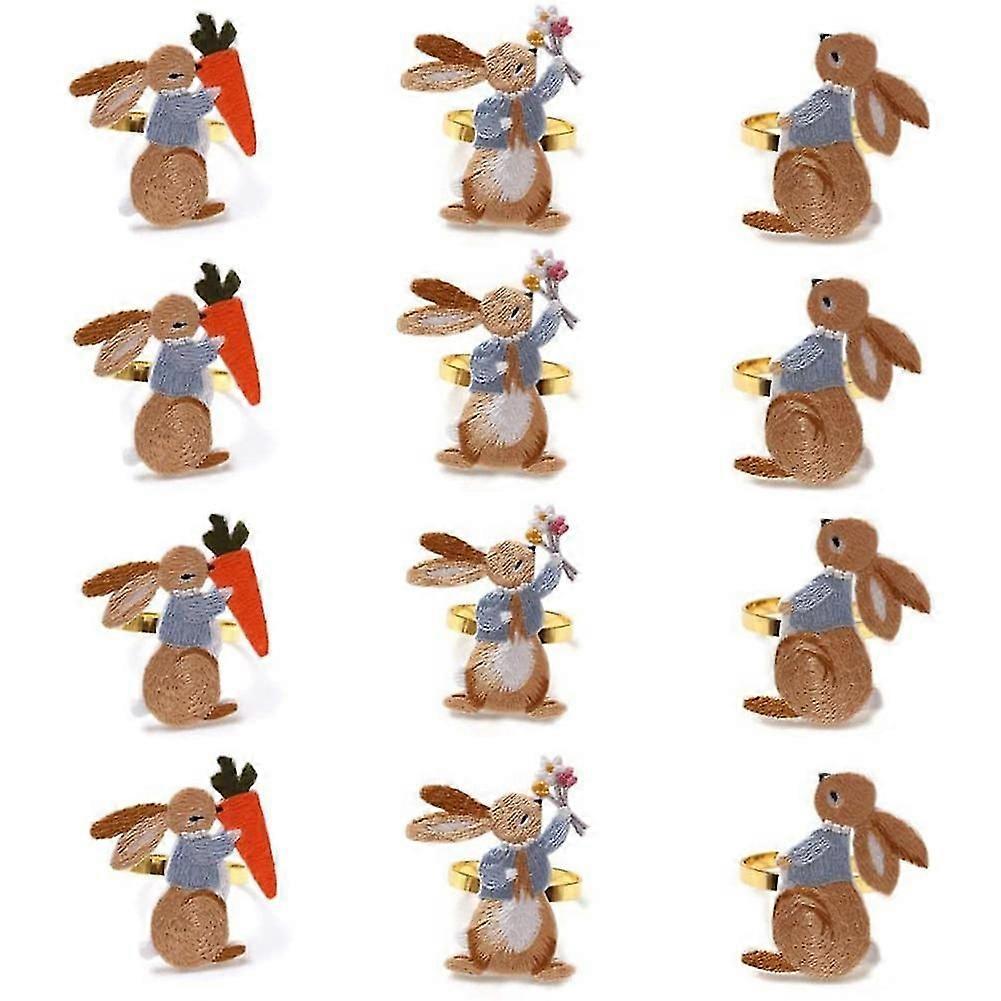 Easter Napkin Rings 12 Bunny Napkin Buckle Embroidered Rabbit Metal Napkin Ring Holders For Dining