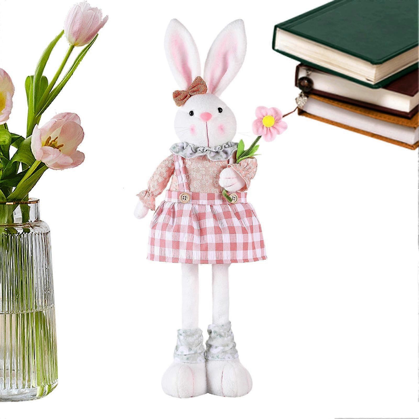 Easter Bunny Plush, Soft Polyester Plush Toy With Carrot And Floral Accents For Easter Decor, Home And Parties, Pink