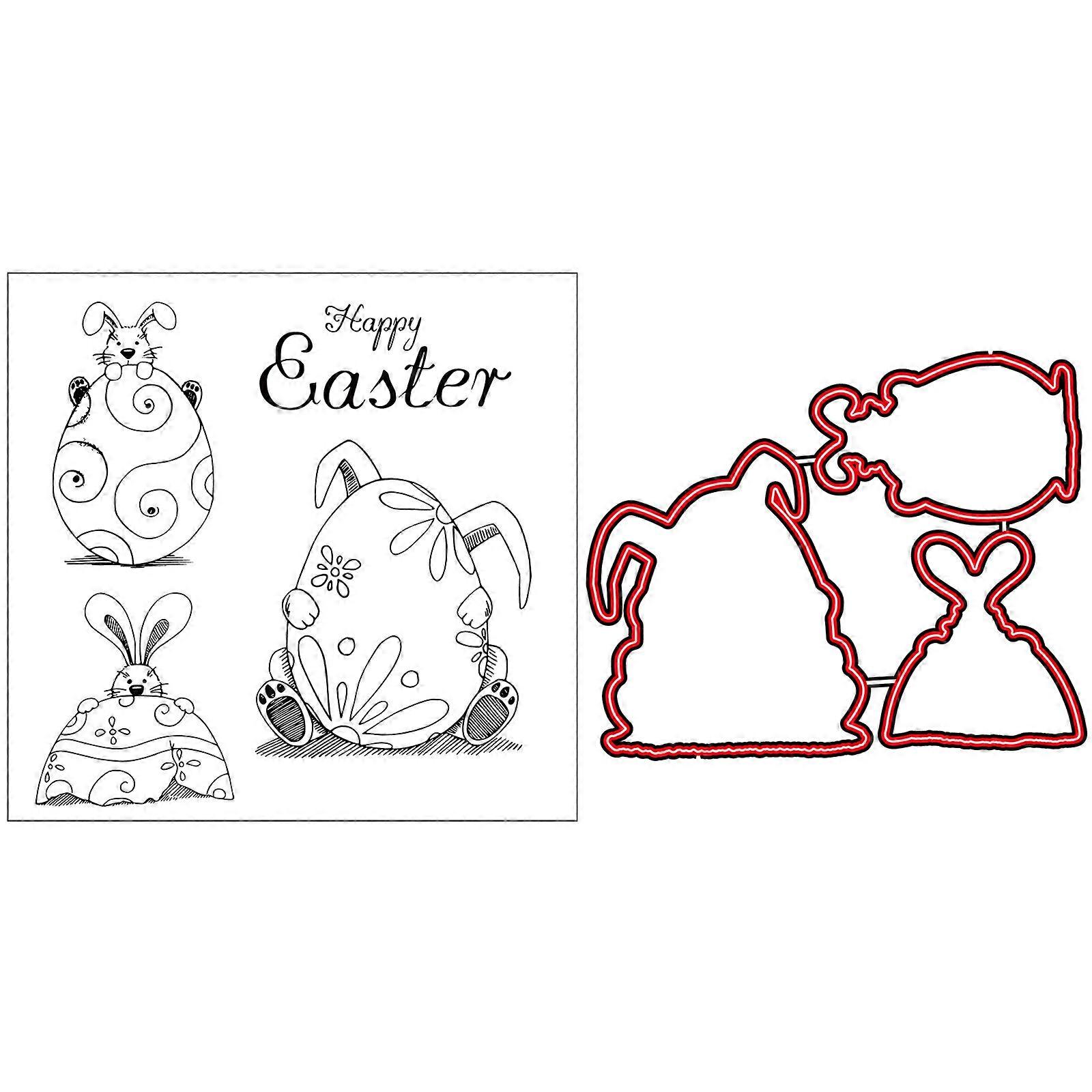 Easter Bunny Egg Seal Stamp with Cutting Dies Stencil Set DIY Scrapbooking Embossing Photo Album Decor Paper Card Craft Art