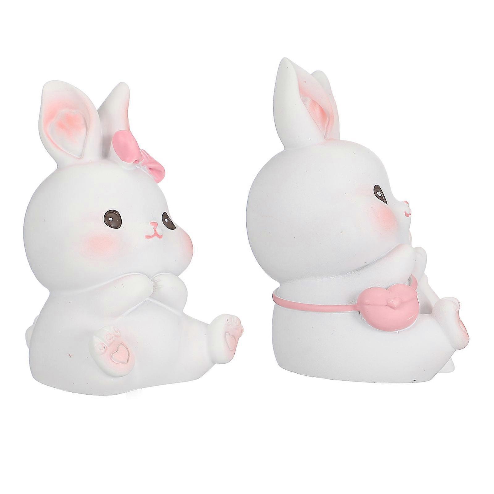 Easter Bunny Table Decor Rabbit Small Ornaments Birthday Celebration Resin Pink 5x4x3.5cm 2Pcs