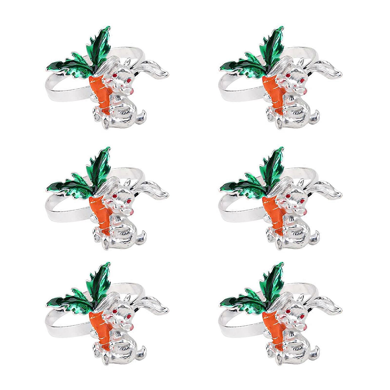Easter Bunny Napkin Rings 6 Pcs Metal Rabbit with Flower Napkin Buckle Holder Silver