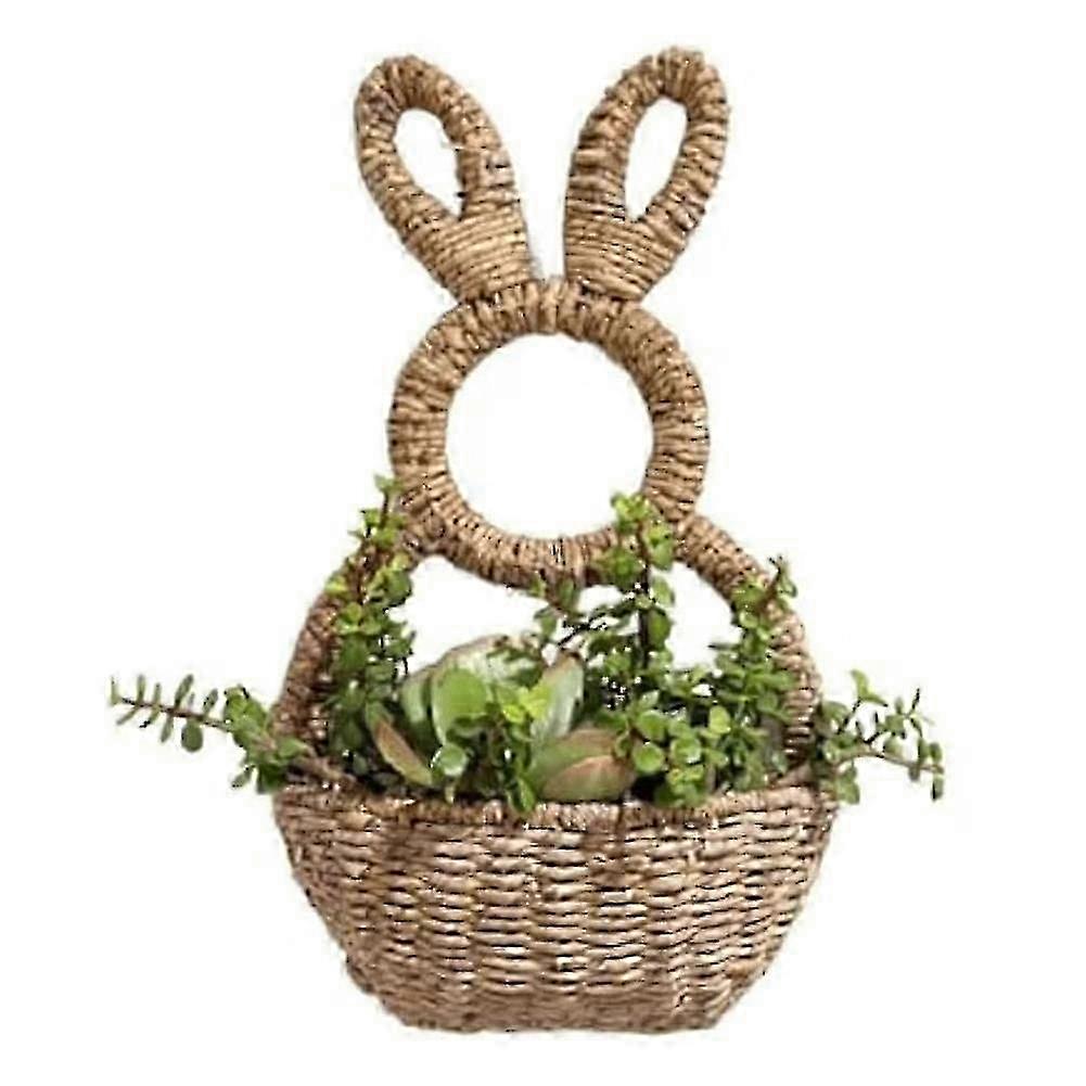 Easter Bunny Woven Basket with Rustic Flowers for Front Door Decor