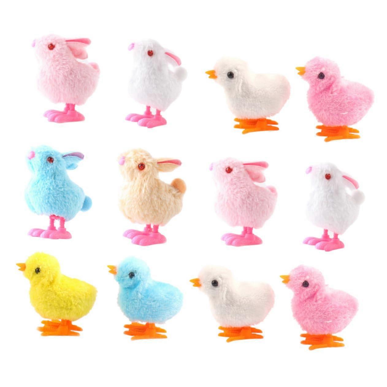 12 Pack Wind Up Toys with Chick and Bunny Plush Figures for Easter Party Decorations and Gifts for Boys