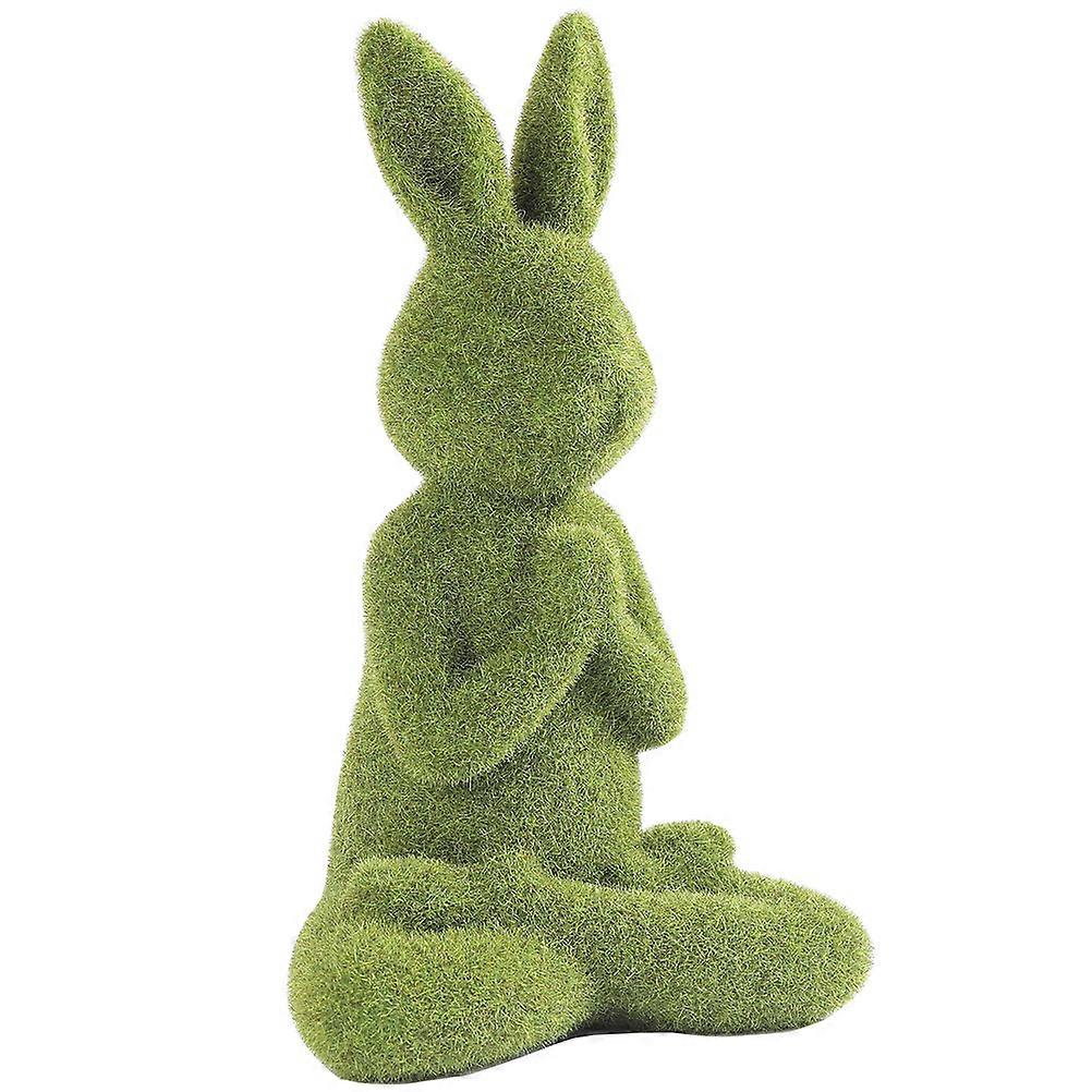 Green Resin Flocked Rabbit Decor for Easter Party Adornment Lifelike Miniature Ornament 4.5 Inches