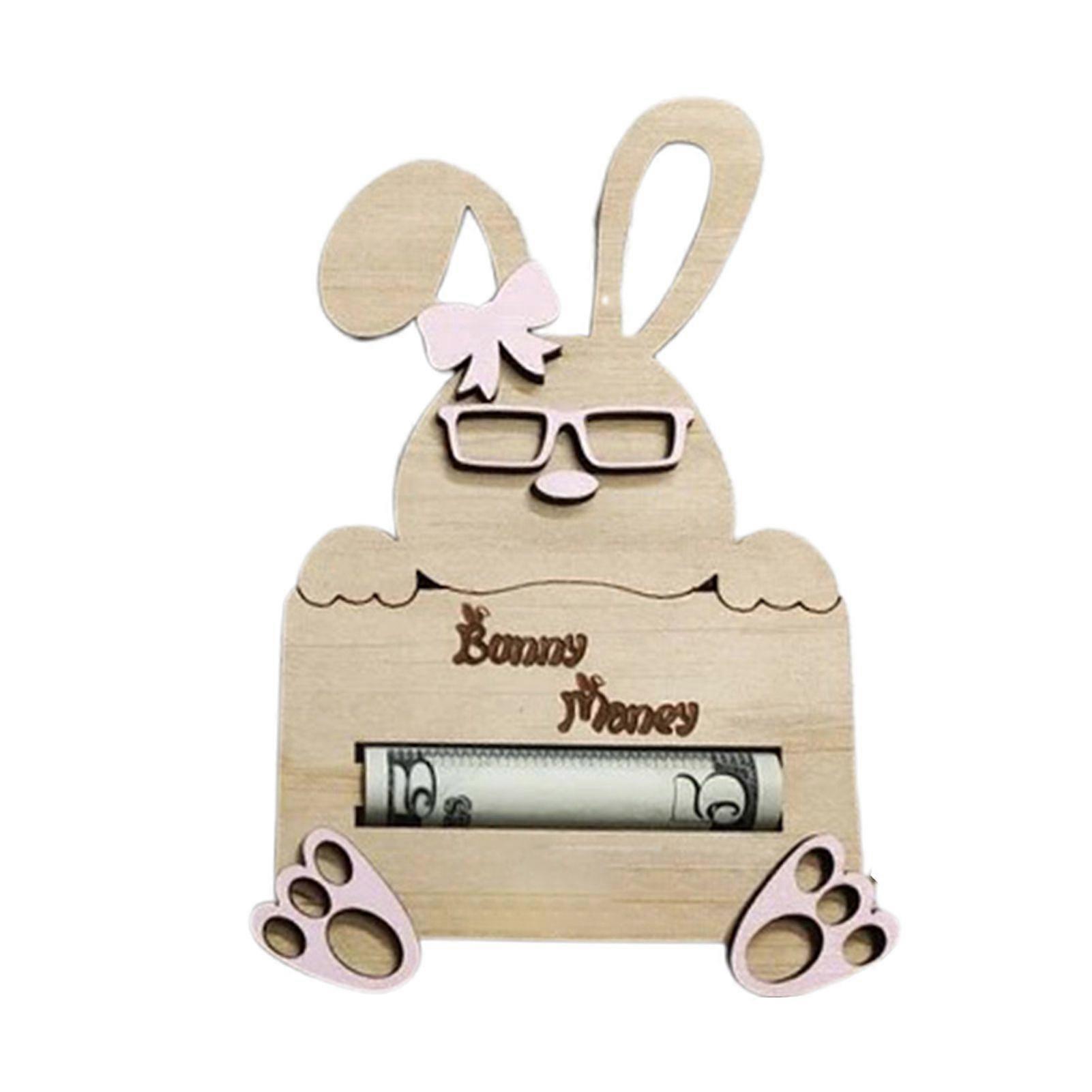 Easter Money Holder Wooden Rabbit Card Cash Holder Easter Bunny Gift Card Holder for Money Tree Table Centerpiece Decoration