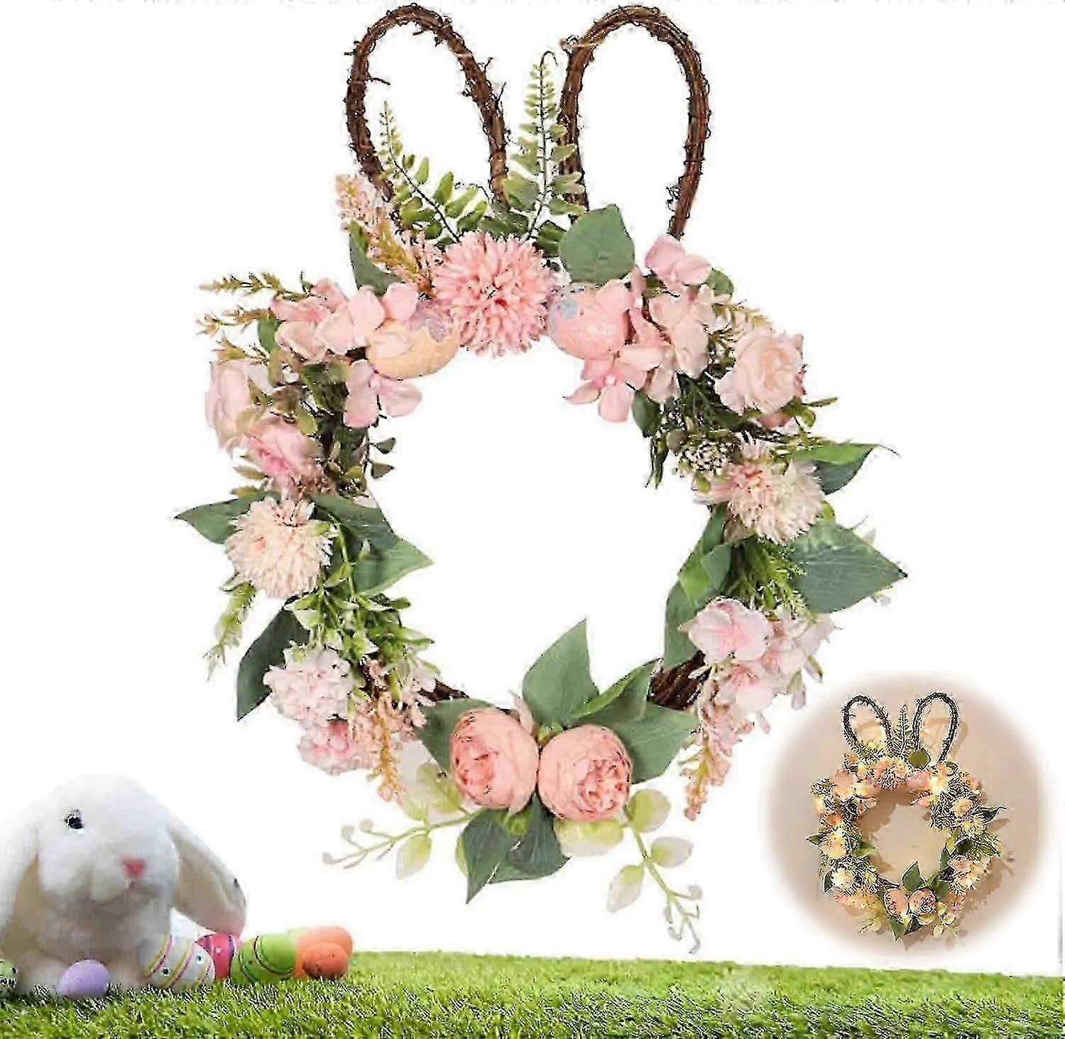 Easter wreath, 45 cm Easter bunny wreath with lights, spring decor, festive holiday