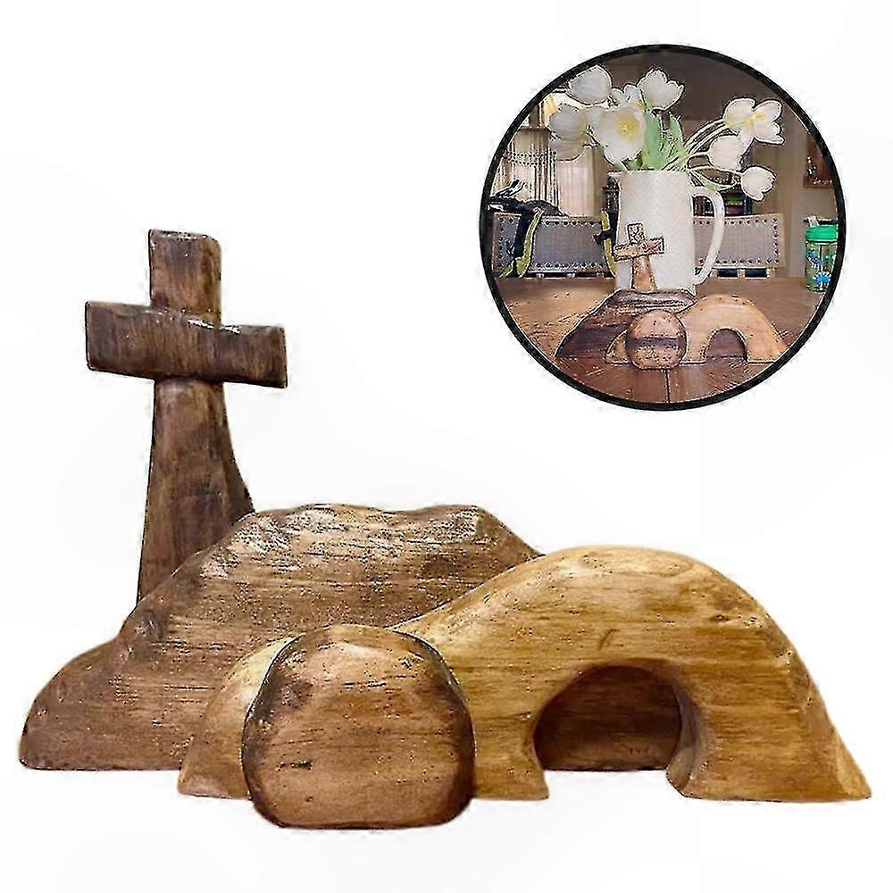Easter Cross and Tomb Decor Set, Wooden Tiered Tray Decoration Bundle for Easter Celebrations