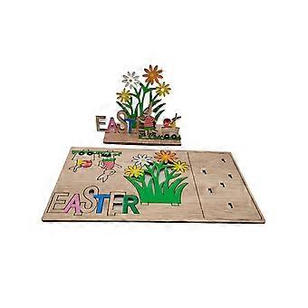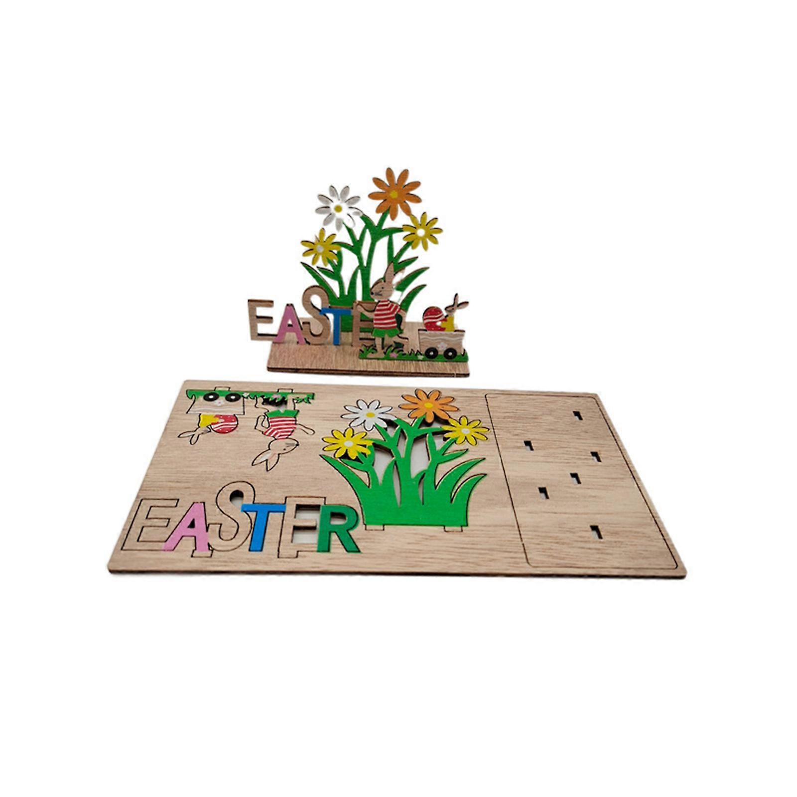 Easter Wooden Bunny Ornament Wood Egg Flower Decorative Wood Crafts for Home Festival Desktop Decoration Colorful