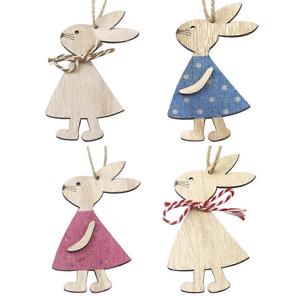 Easter Wooden Bunny Hanging Ornaments - Rabbit Shape DIY Craft Accessory, Decorations Gift Wood Slices for Party Supplies, Home, Garden, Tree(4pcs, mu