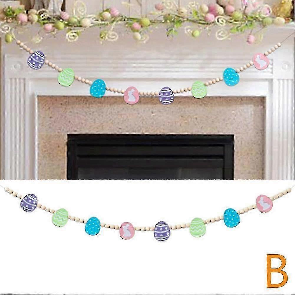 Easter Wooden Bead Garland Bunny and Carrot Banner Easter Decorations
