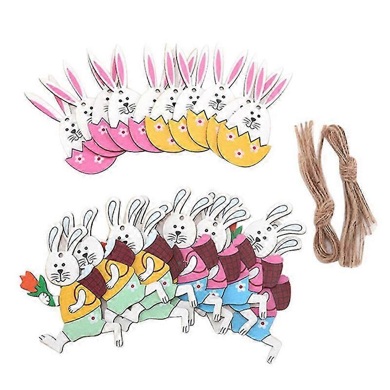 Easter Wooden Pendants Set Colorful Egg Bunny Hanging Ornament Crafts for Home Party Front Door Win