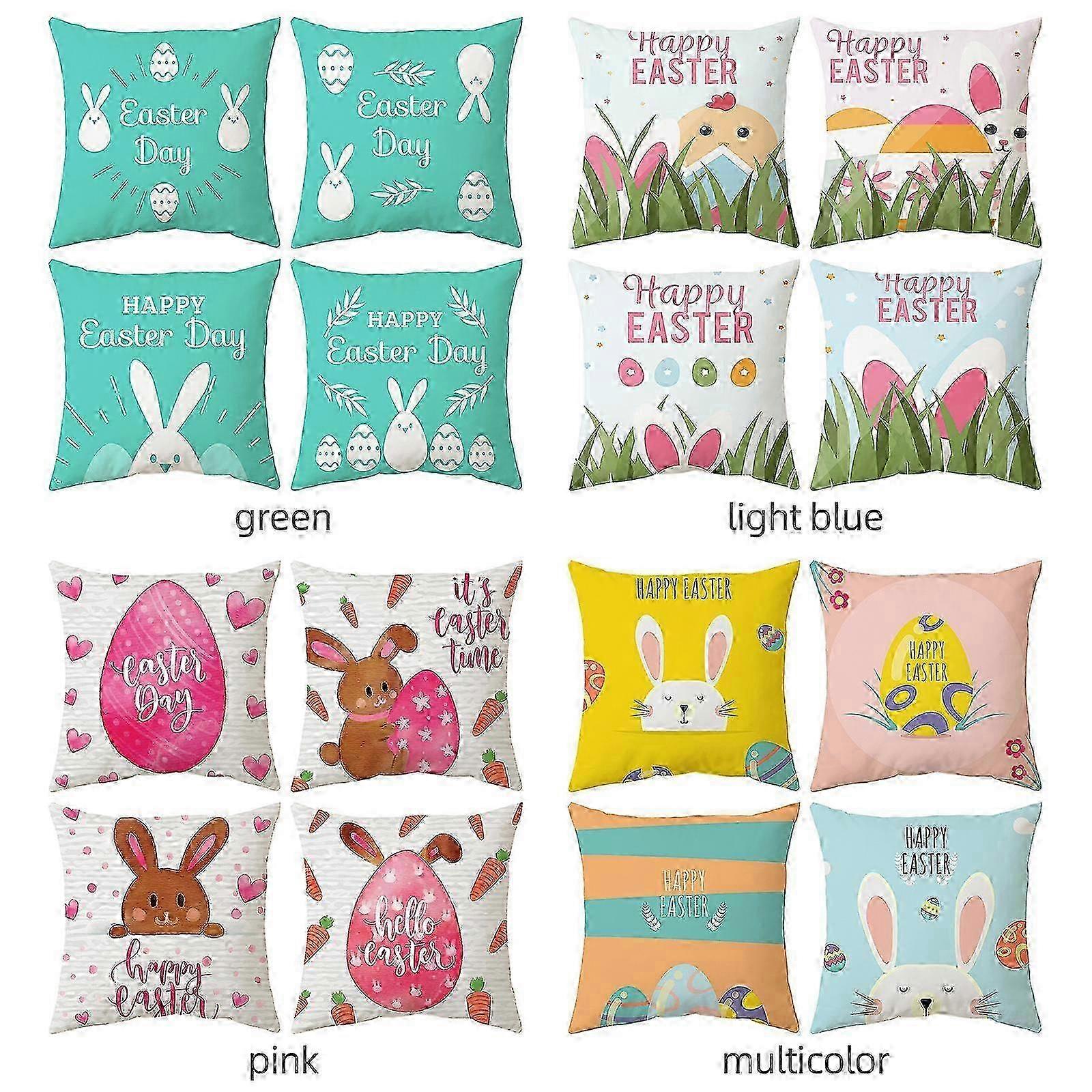 Easter Pillow Cover 18x18 Inch Spring Decorations Rabbit Eggs Throw Cushion Case
