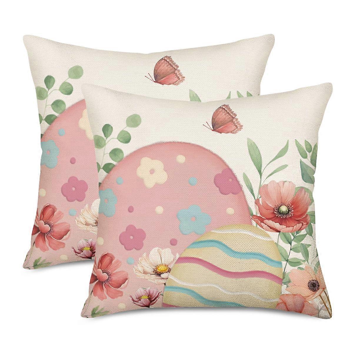 Easter Pillow Covers 18x18 Inch Set of 2 Floral Design Throw Pillows for Spring Home Decor