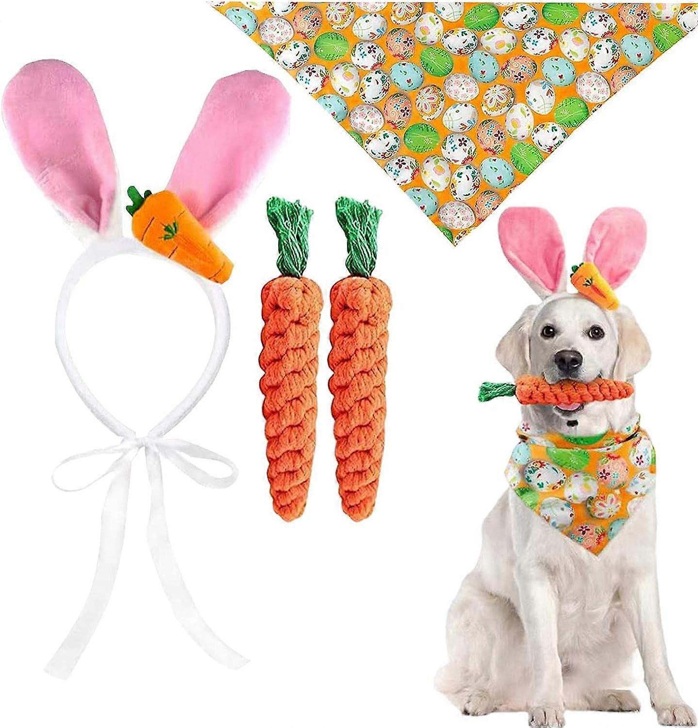 Give your furry best friend the best Easter with this Dog Easter Outfit! This set comes with a chewable carrot toy and a headband and bandana to make your pup look extra cute. The outfit is perfect for family photos, special occasions, or as a birthday present. Your pup will be the cutest around!
