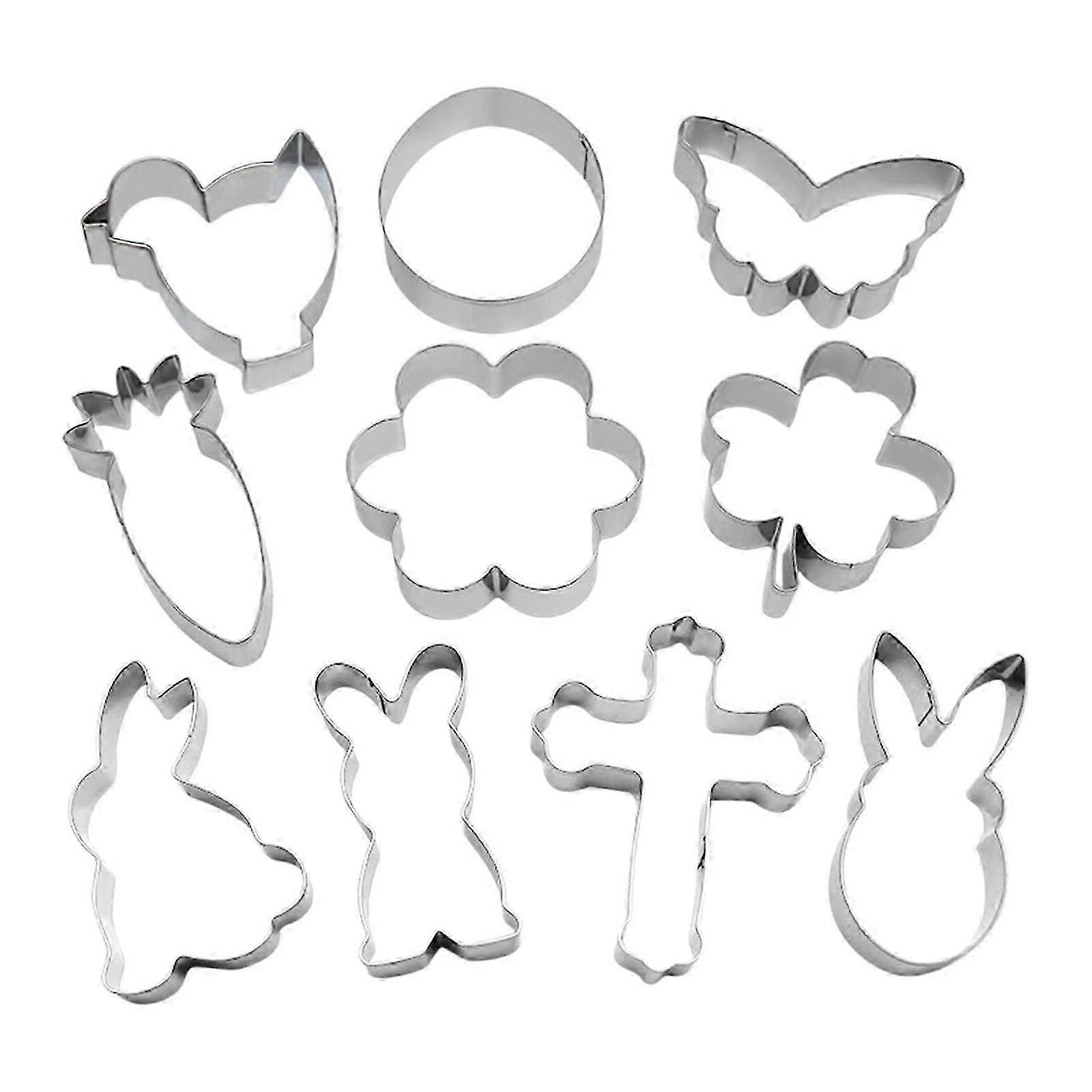 Easter 10 Piece Stainless Steel Baking Cutters Set Bunny Flower Shapes For Cakes Sandwiches Lunch Boxes Non-Stick Molds
