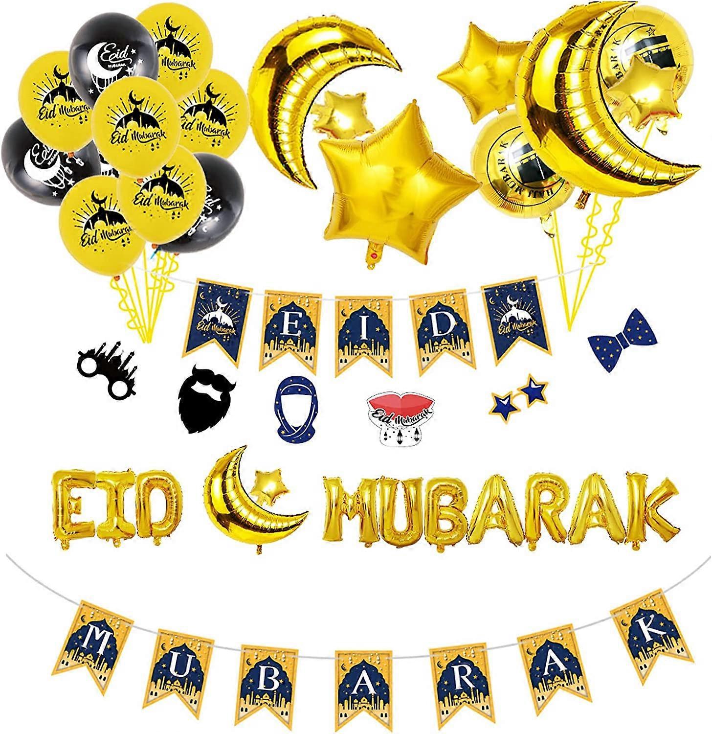 Eid Mubarak Balloons Set Aluminium Foil Latex Balloons Star Moon Ramadan Decorations Eid Mubarak Banner Ramadan Party Decorations Accessories (A)