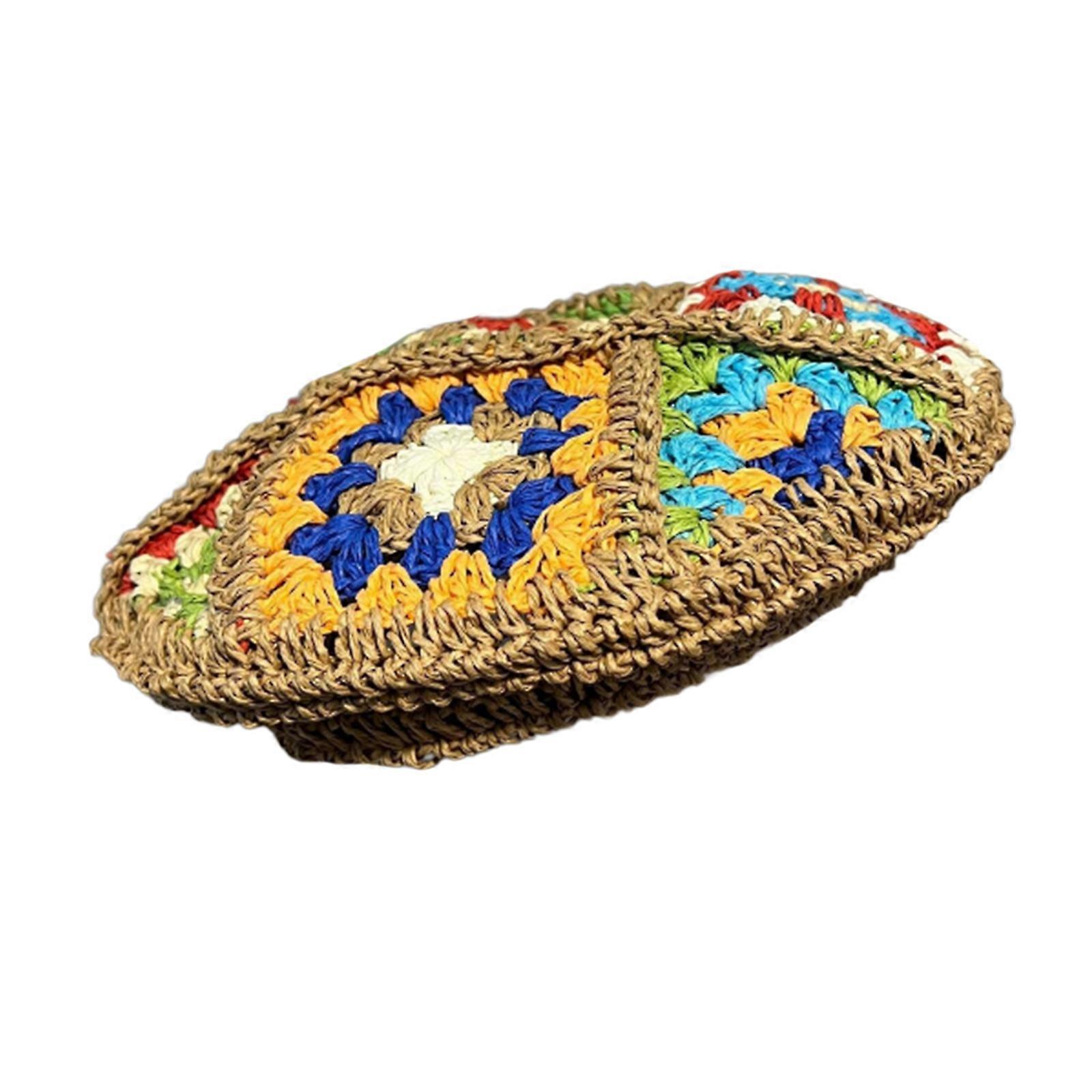 Vintage Granny-square Artist Hat Cabbie Cap Beret Hat Outdoor Leisure Men Women Flower Painter Hat British Crocheted Cap Khaki