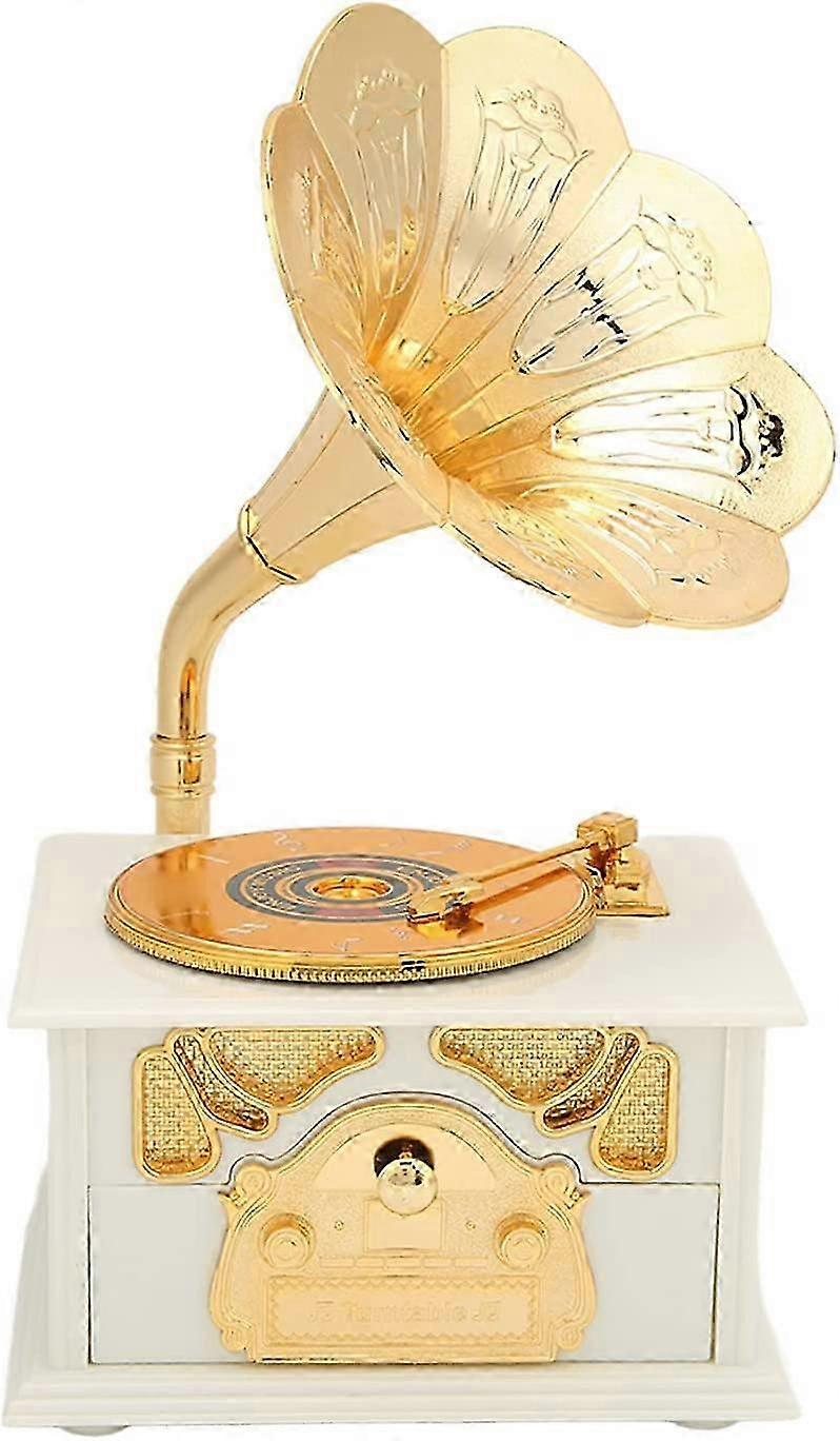 Vintage Hand Crank Gramophone Style Music Boxes, Mini Horn Ornament Inspired by Castle in the Sky Design