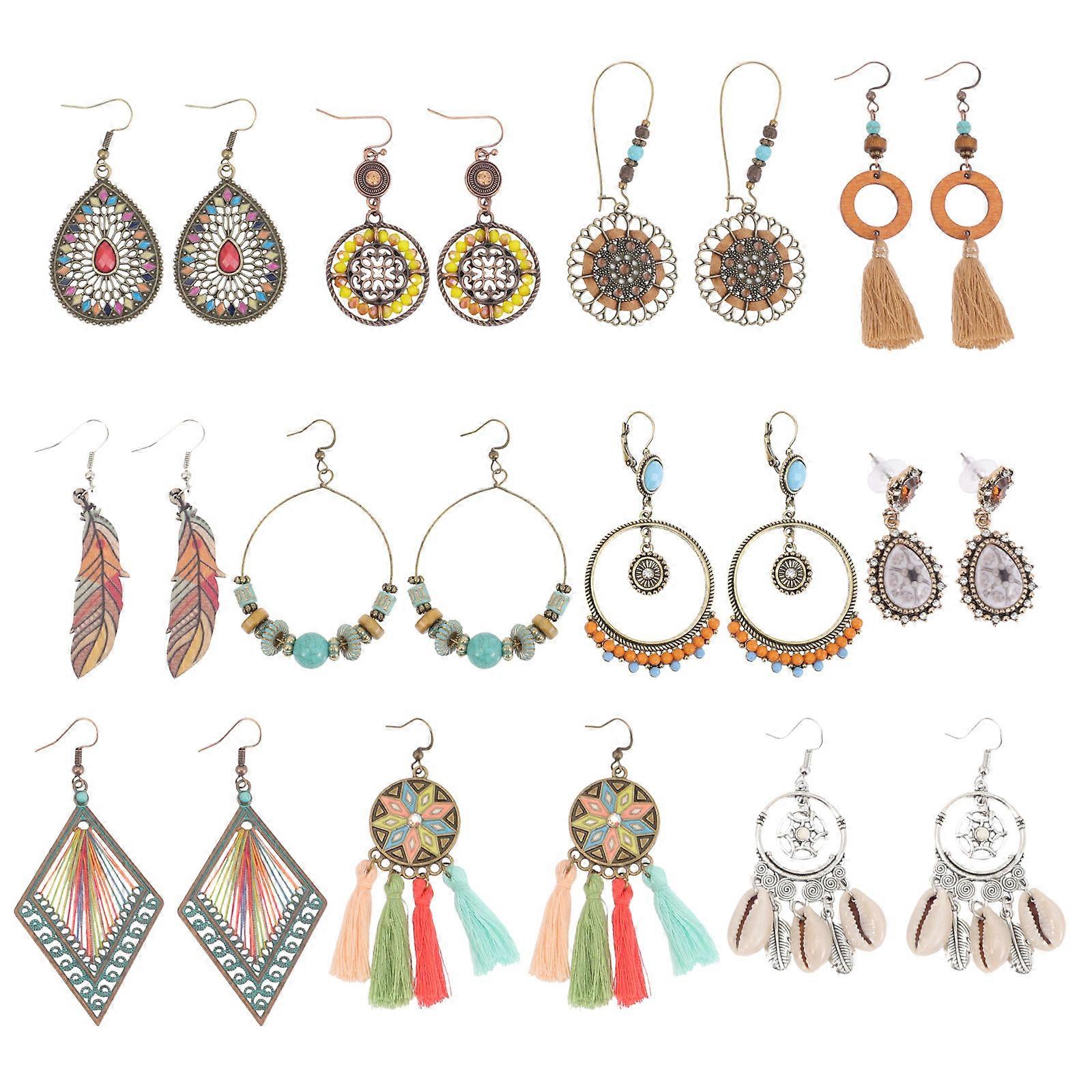 Vintage Earrings Polyester Alloy Material Trendy Earrings For Women Carnivals Dating Bohemian Style 11Pairs