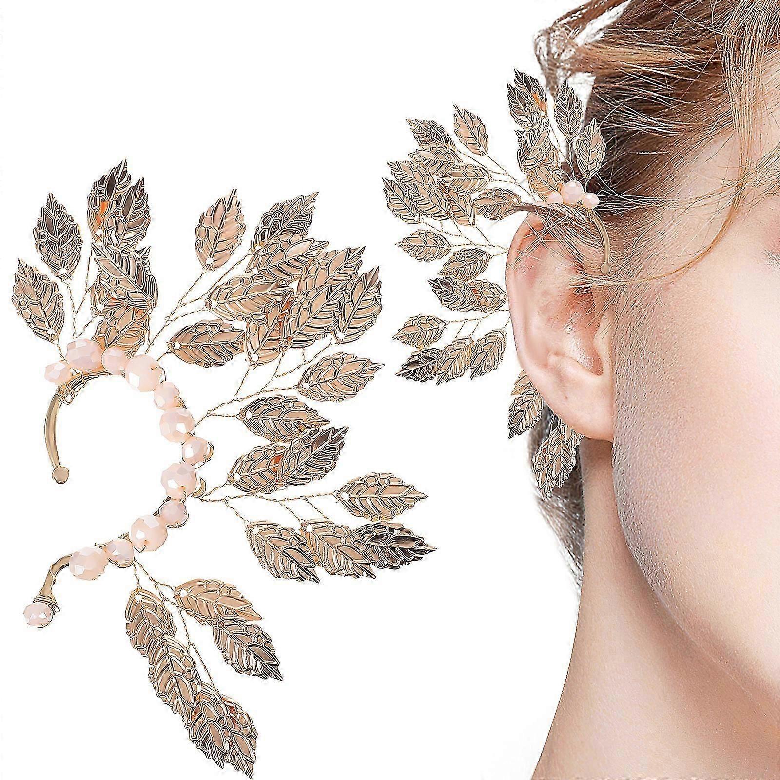 Vintage Ear Cuff Leaf Crystal Non Pierced Ear Bone Clip Left Side Wrap Earring for Women