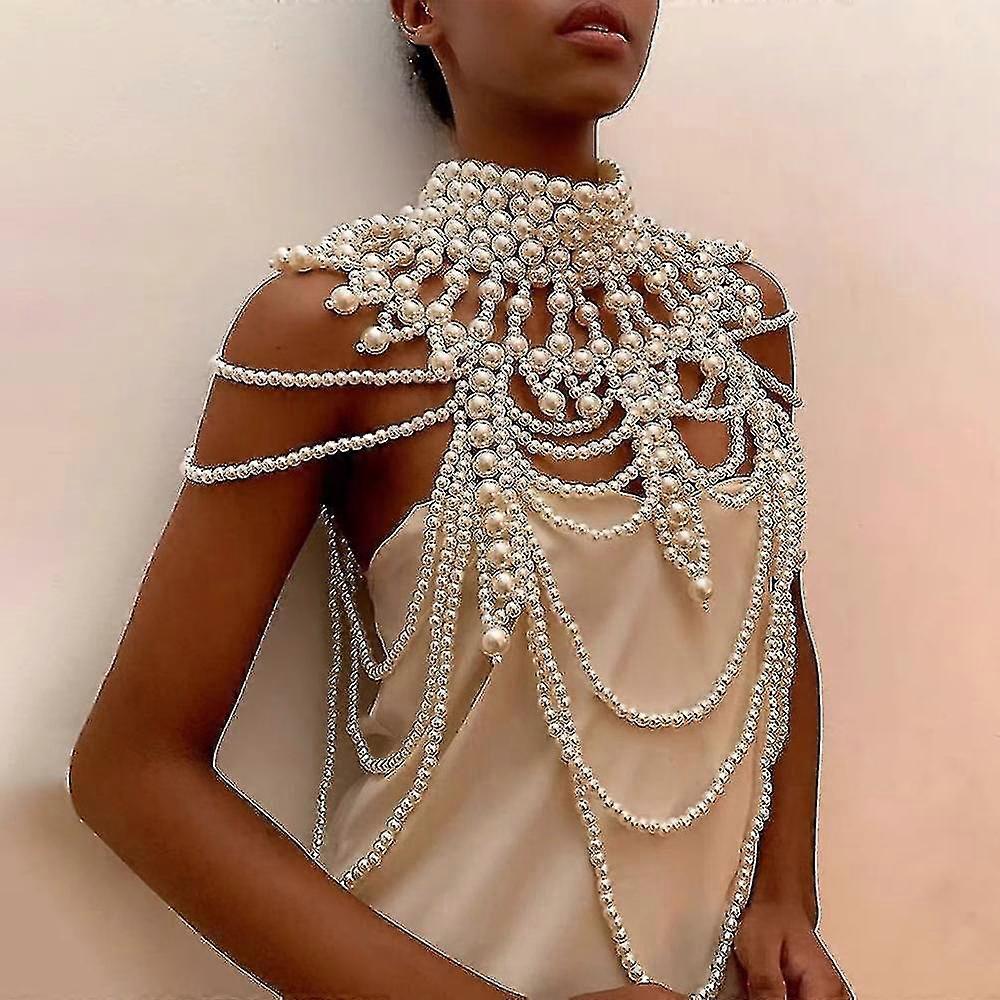 Vintage Wedding Dress Pearl Shoulder Chain Jewelry Handmade Imitation Pear Necklacel Luxury Large Size Body Chain