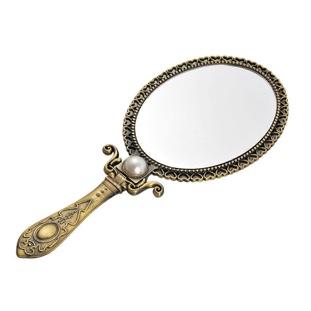 Vintage oval mirror Hand Folding Makeup Mirrors Gold decor Retro