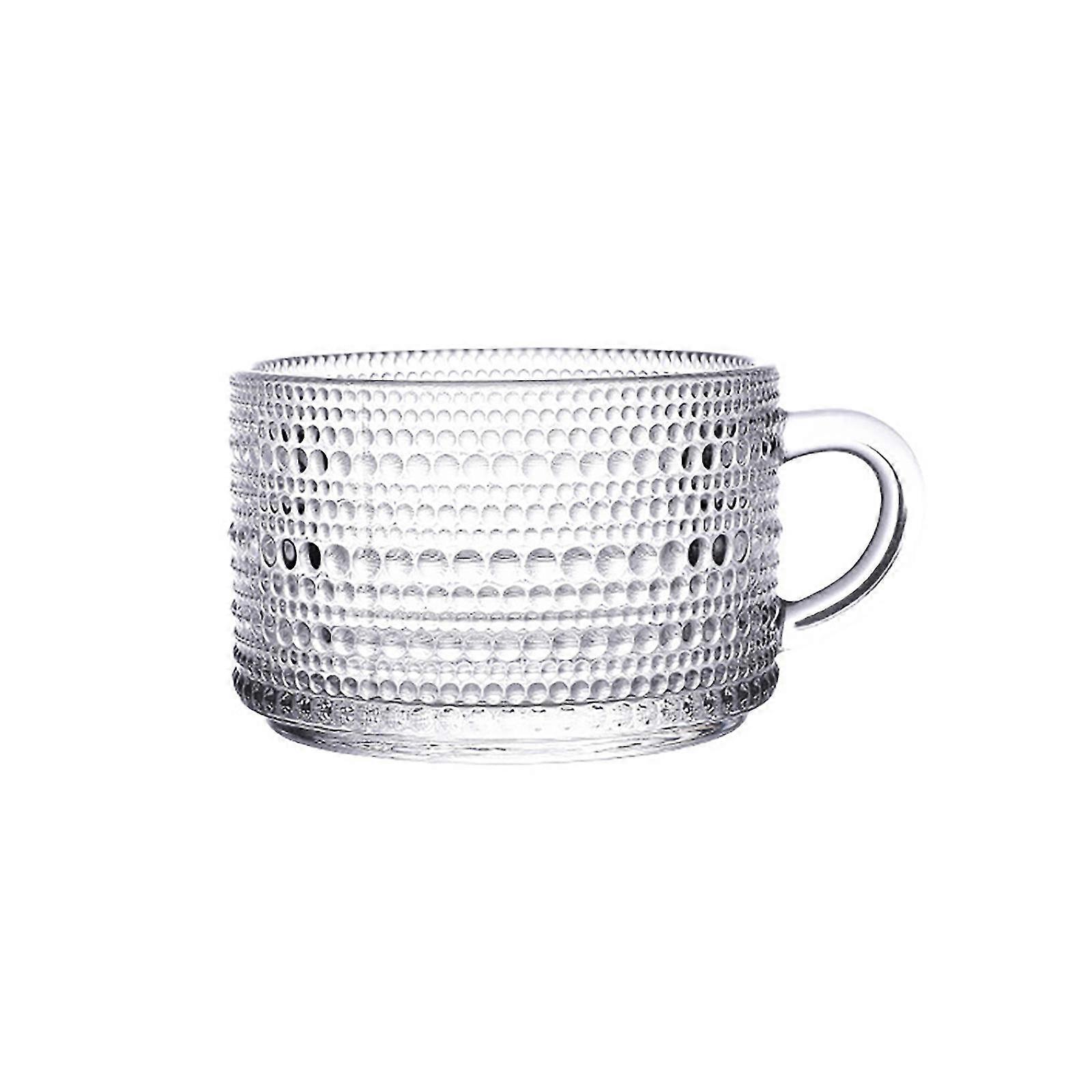 Vintage Glass Coffee Mug,14/14.6oz Clear Embossed Glass Cup With Handle For Latte, Milk, Cereal, Beverages