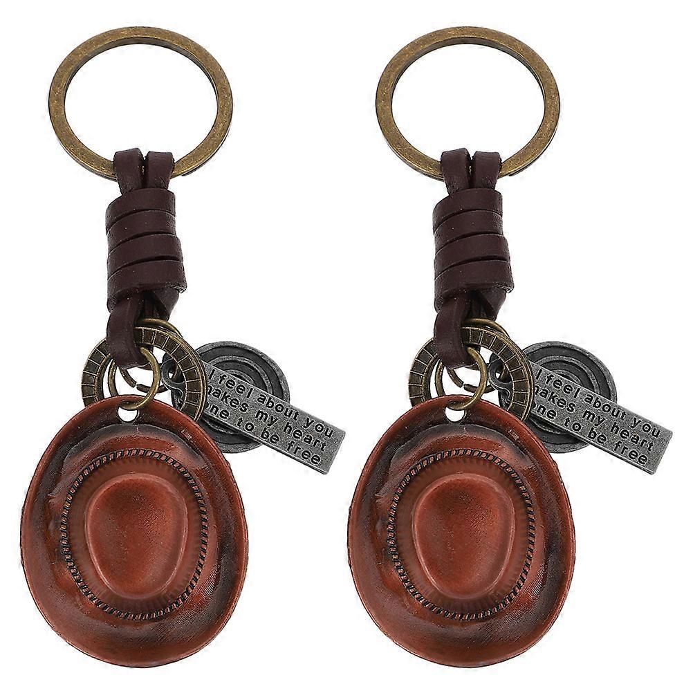 Vintage Cowboy Hat Keychain Set Handwoven Western Style Key Accessory for Bags, Wallets, and Car Keys Unique Cowboy Themed Jewelry Decoration