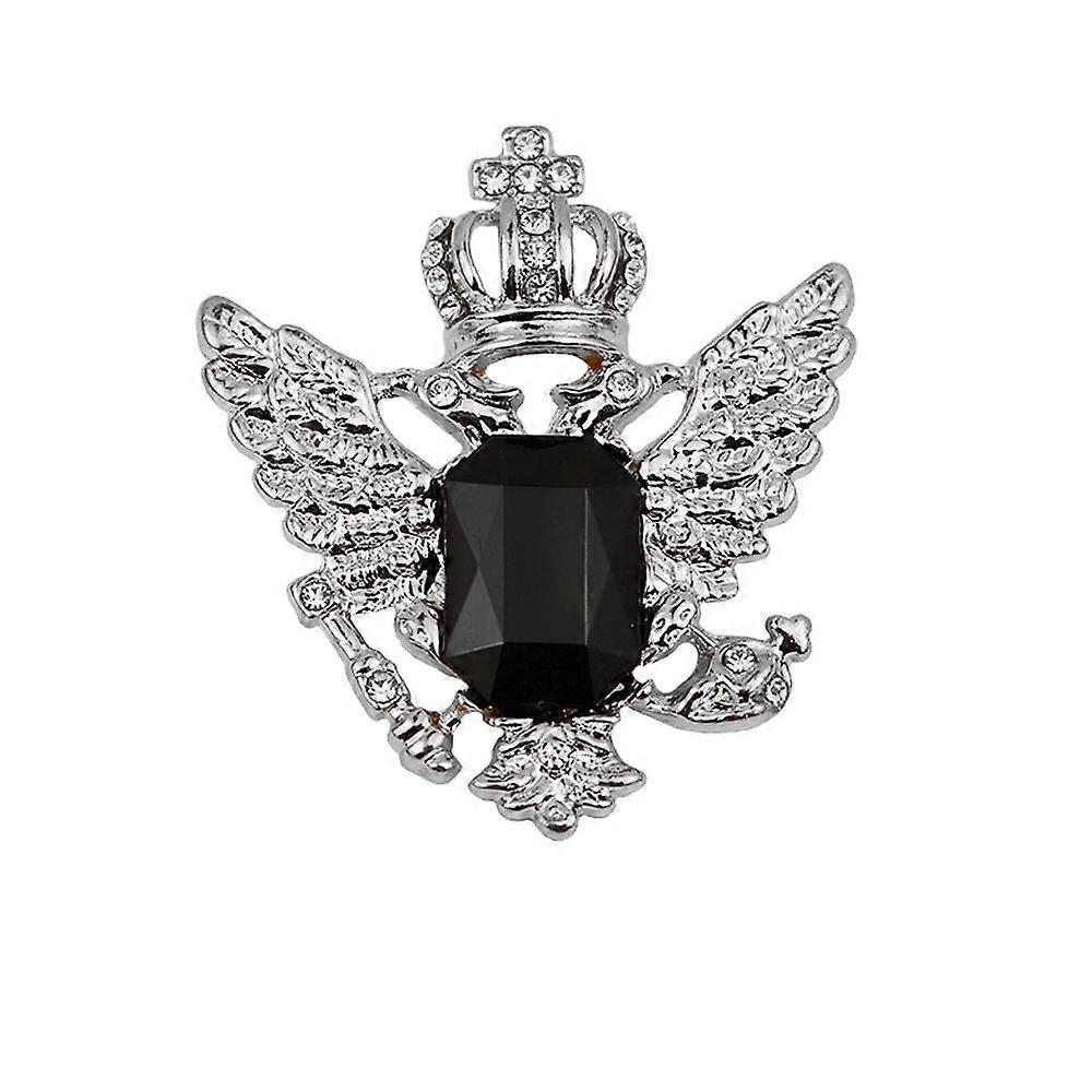 Vintage Crystal Crown Eagle Collar Brooch Pin for Men Accessories