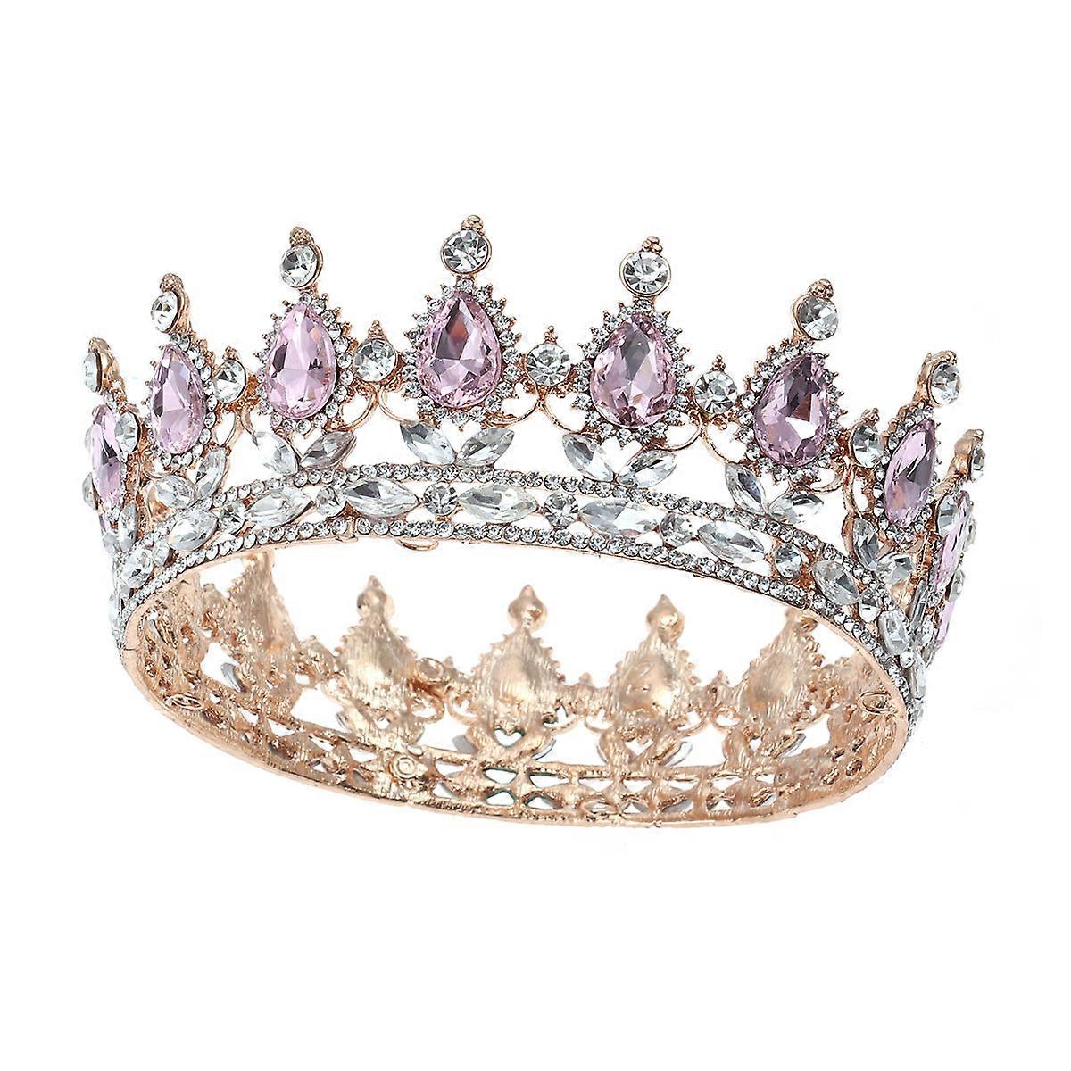 Vintage Crystal Rhinestone Bridal Crown Tiara Sparkling Jewelry Decoration for Wedding Engagement Pink