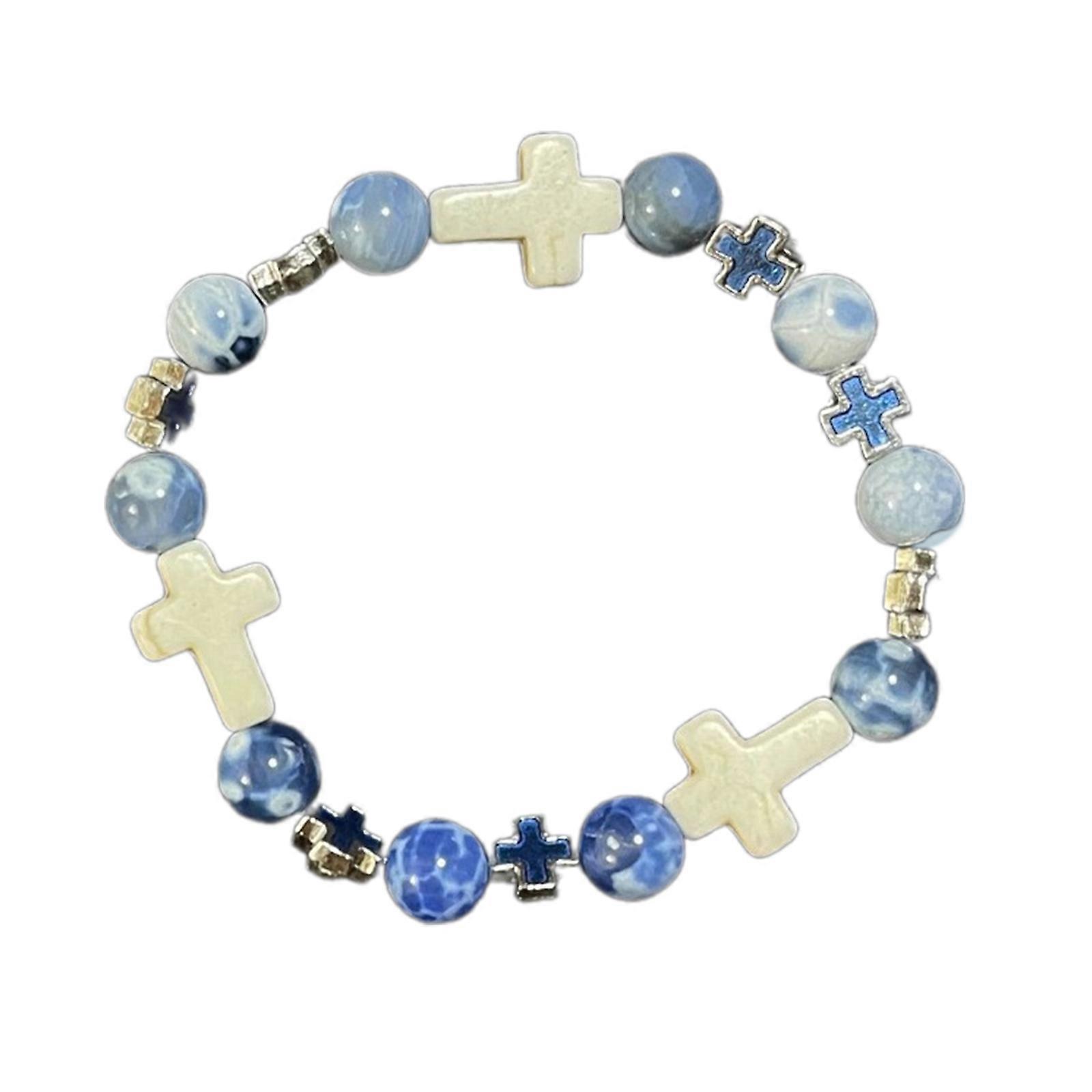 Vintage Cross Bracelets Stackable Bead Bracelets Friendship Bracelets Couple Bracelet Religious Gift for Women Man Blue