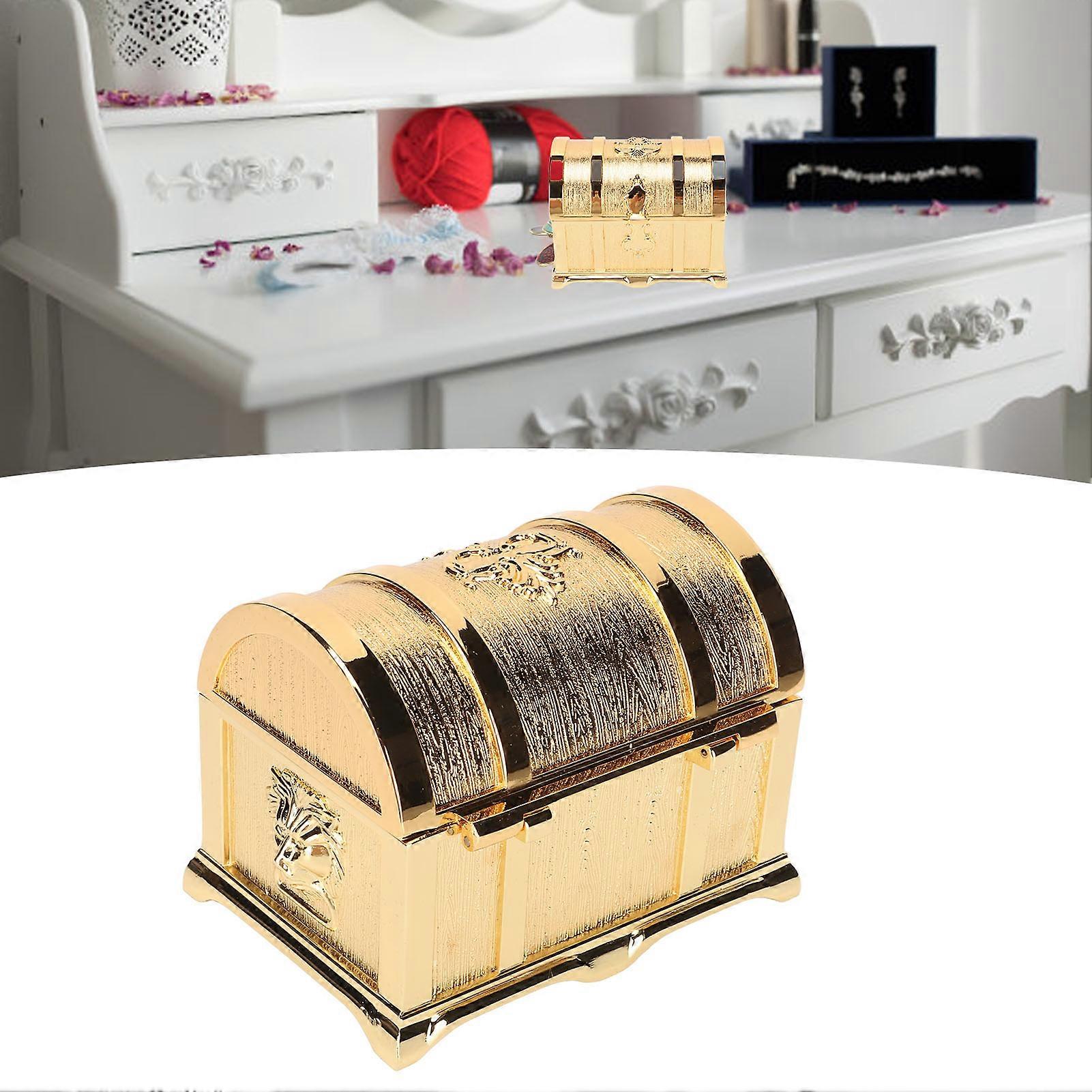 Vintage Jewelry Box Gold Color Retro Style Zinc Alloy Scratch Proof Small Jewelry Box for Rings Earrings Necklace M 3.8x3.1x2.9in