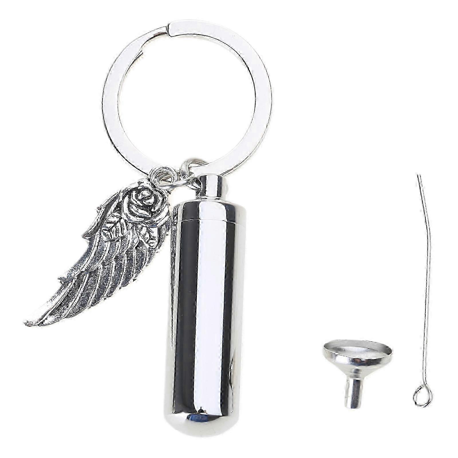 Vintage Cylinder Cremation Keychain DIY Pendant for Human/Pet Ashes Angel Wing Urn Keychain Memorial Ashes Jewelry Gift