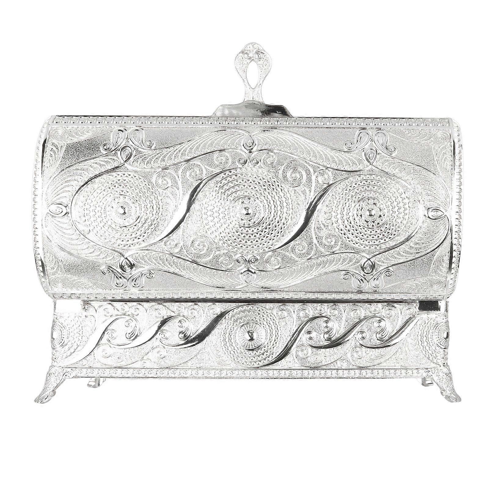 Vintage Silver Jewelry Box Alloy Rustproof Velvet Lined Storage
