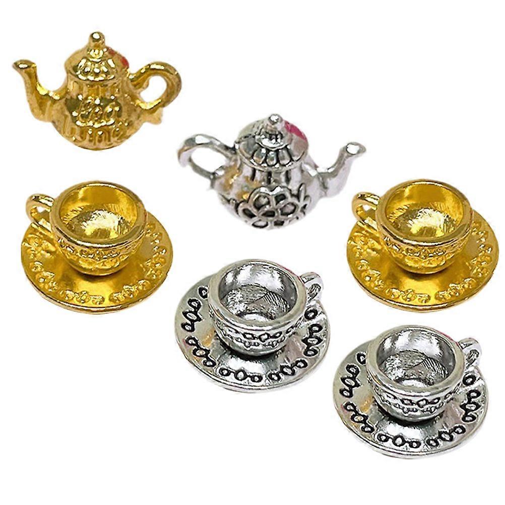 Vintage Style Miniature Tea Set with Teapot, Cups & Plates for Dollhouses, Safe Reusable Elegant Design for DIY Crafting & Mini House Decor