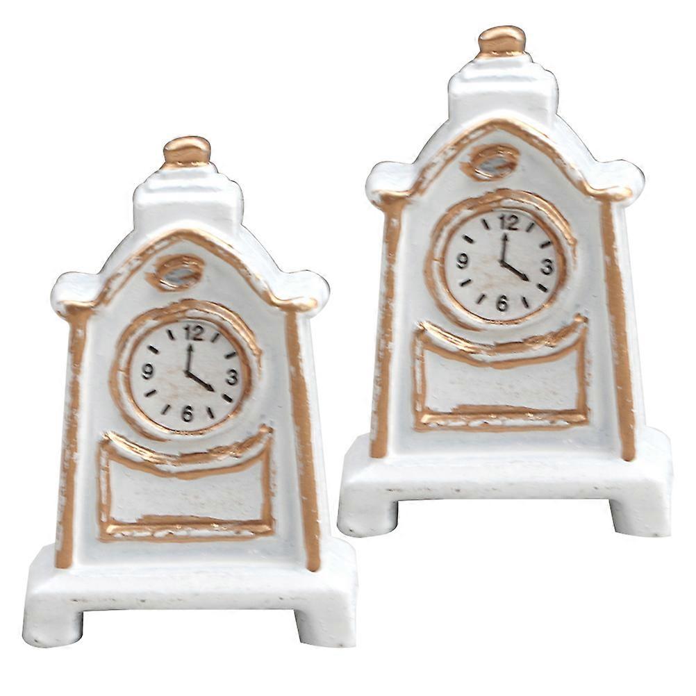 Vintage Style Mini Pendulum Clock Decoration for Kids Playing White Alloy 2 Pieces Small Size