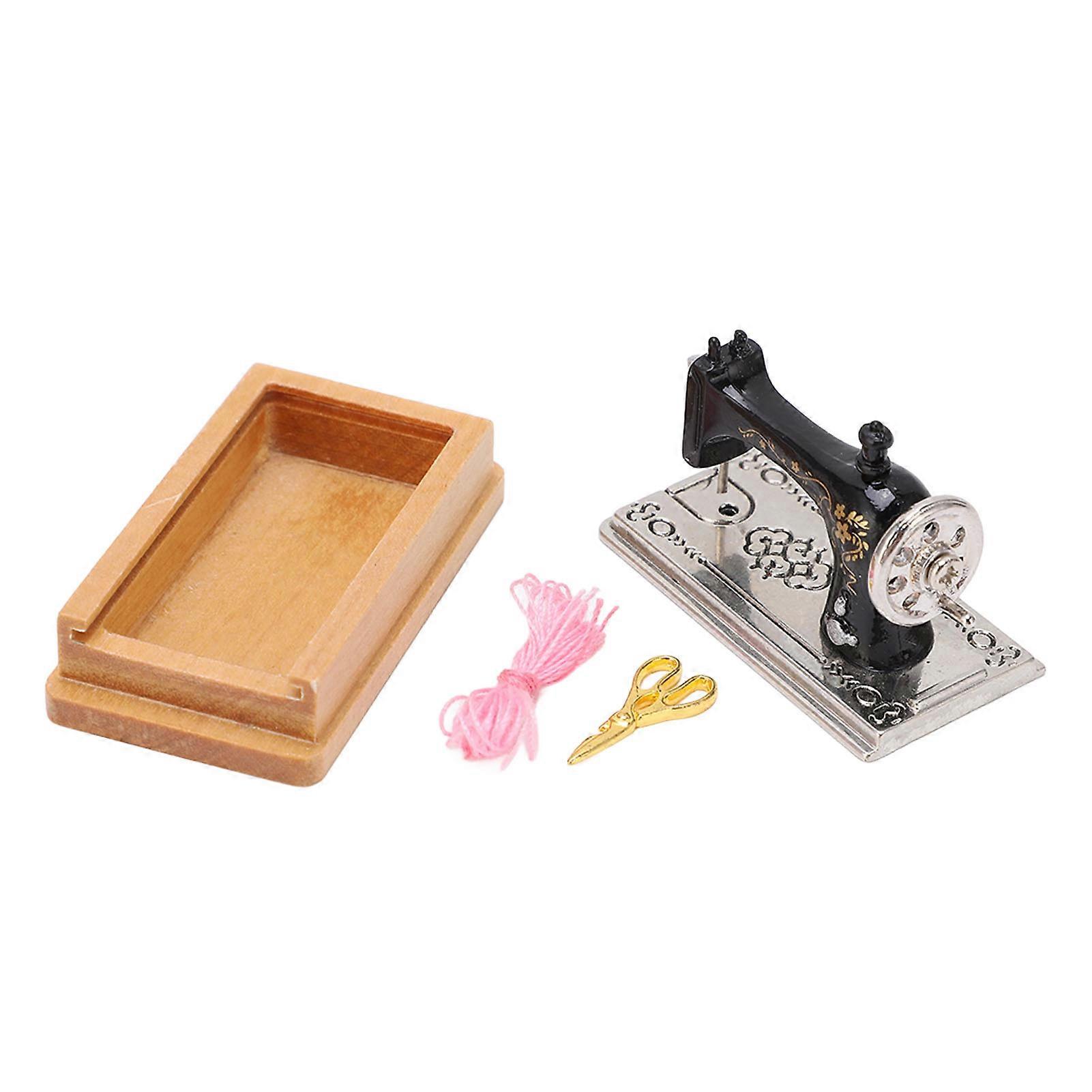 Vintage Style Realistic 1/12 Scale Dollhouse Miniature Sewing Machine for Decoration Wood Color